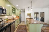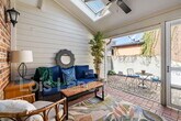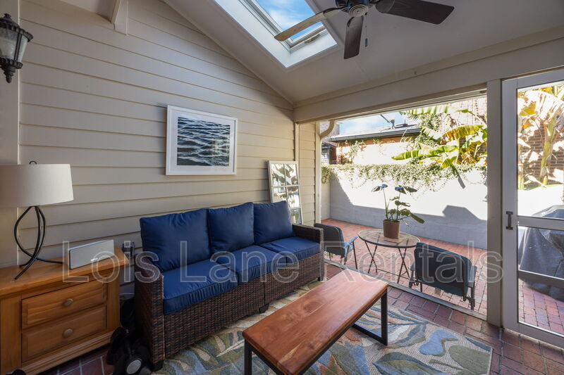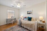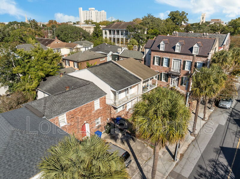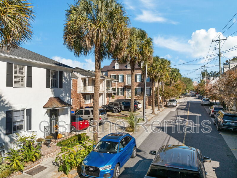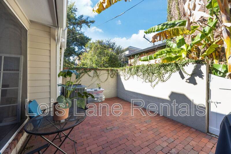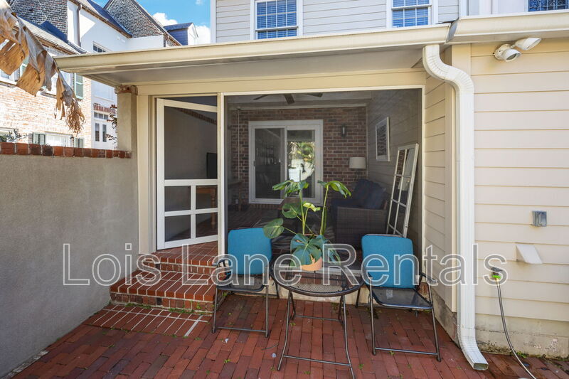 Recently updated as a Fully Furnished and turn-key house located in the heart of the historic district of downtown Charleston. This beautifully appointed home features an open floor plan, refinished oak floors, and kitchen with custom cabinetry, stainless steel appliances, granite countertops. The downstairs spacious living room opens to a dining area and kitchen and has a half bath and laundry room with a full-size washer and dryer. The screened-in porch, with its vaulted ceiling and skylights, artfully extends the living space to an outdoor entertainment room which opens to a courtyard patio. Upstairs, the primary bedroom features a queen bed, two closets, an ensuite bathroom with a walk-in shower, and access to the private balcony. The guest bedroom with ensuite bathroom is generously sized and has a pop-up trundle bed and a desk area, making it ideal as a guest room or home office. This unique property is within walking distance of popular restaurants, shops, galleries and is only steps away from Colonial Lake. On-Site Off-Street Driveway Parking for Two-Vehicles. Application fee is $75.
