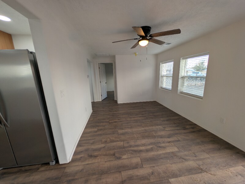 Property Id: 2197499 Located in Albuquerque's peaceful North Valley, this 3 bed / 1 bath home has brand-new everything — kitchen, bath, appliances, flooring, lighting, paint, and a metal roof. Super clean and modern inside with that quiet, rural North Valley feel outside. Location Highlights Right off 2th St & Osuna — close to: Los Poblanos & North Valley acequia trails Los Ranchos de Albuquerque Local coffee, growers markets, farm stands Easy access to I-25 for fast commuting! Features Brand-new kitchen w/ stainless steel appliances Gas stove + built-in microwave Large stainless sink & sprayer faucet Modern bathroom w/ black marble-style tile Washer & dryer included Vinyl wood flooring throughout Off-street parking Quiet lot with plenty of space Landscaping to be completed soon Note: Owner farms on the back portion of the lot. Tenant area is private with its own entrance. Terms: 1 year lease No smoking Tenant pays gas, electric above $50. Owner pays water, sewer, trash, electric up to $50