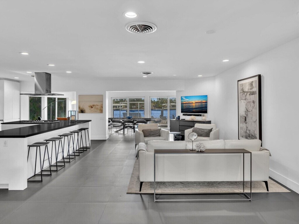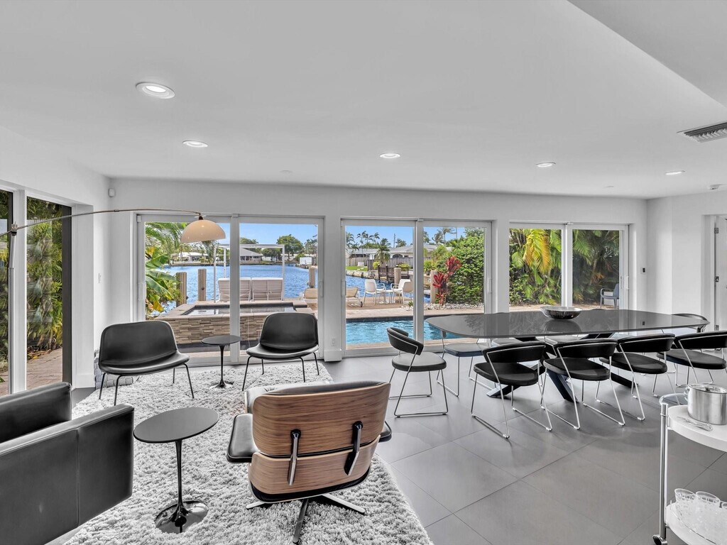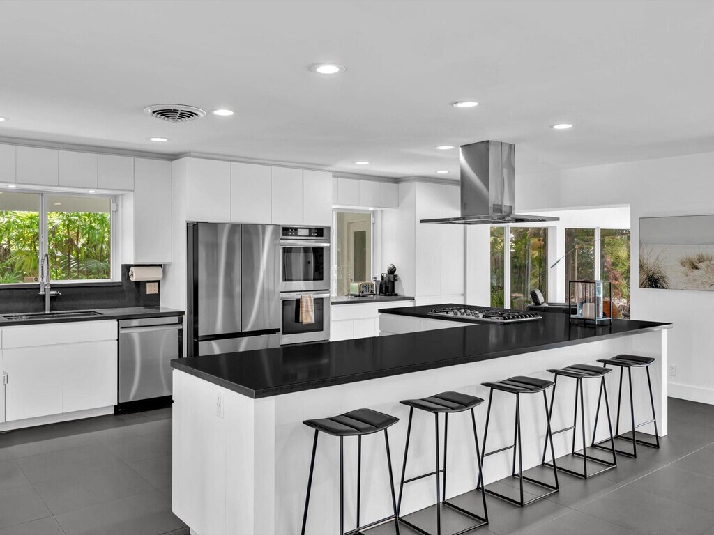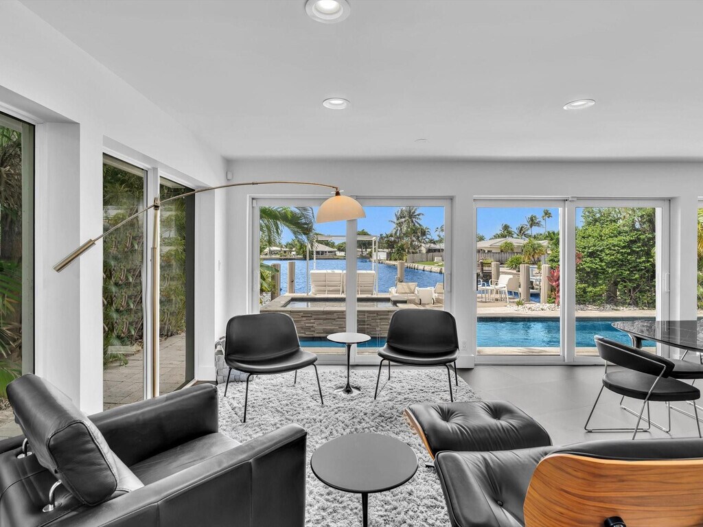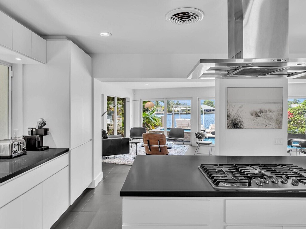 'Sleek Italian stone pool/spa sitting lakeside attached to spacious,modern,clean-lined 4 BR/ 3 BA entertainer's dream home' SEEKS a special summer / fall tenant to wrap its arms around for a lease from 1 to 6 months (end of November). Front of homes offers abundant parking + both mango & avocado trees for your summer fruit bounty. Entering the home,the grand stretch of sparkling lake spreads out & draws your eye fully through the volume-ceiling open living / kitchen / dining / entertaining space beyond the gorgeous Calligaris black marble table for 10 to all it's wonder. Primary bedroom and huge en suite are tucked there in back with pool & water views + an entire front wing has 2 additional bedrooms and an office with pull-out sofa. Lakeside Daybed. Chef Stocked Kitchen. Call today. MLS ID B26019727