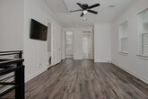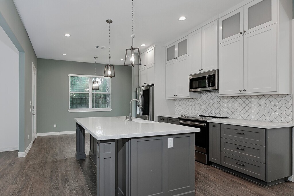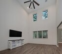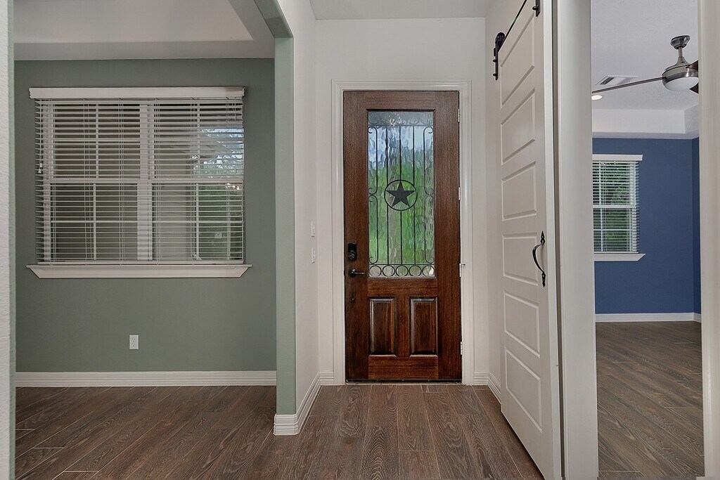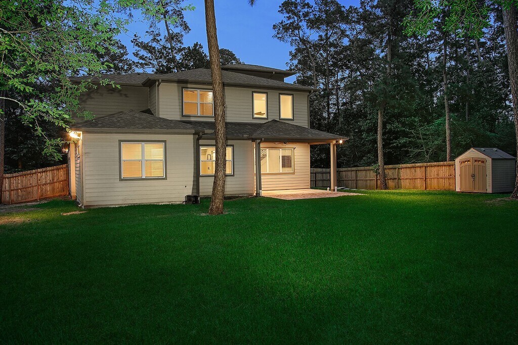 Beautifully designed home on a wooded lot in Stagecoach Farms! Built in 2020 and impeccably maintained,this 4 bedroom,2 full baths,2 half bath residence features an open-concept layout with soaring ceilings,quartz countertops,wood-look tile flooring,Energy Star appliances,and abundant natural light. The island kitchen opens to a spacious living room with a fireplace,perfect for entertaining. Downstairs primary suite offers a spa-like bath with freestanding soaking tub,large shower and walk-in closet. Upstairs,you’ll find three secondary bedrooms,a game room,and a versatile bonus room. Additional highlights include a private home office with sliding barn door and closet,formal dining/flex room,oversized 2 car attached garage,and a fully fenced backyard with a covered patio. Located just minutes from parks,schools,and shopping,this property offers peaceful country living with modern comfort. Lawn Maintenance Included! MLS# 73320471