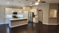 This isn't a typical rental you will see in this area. It is for someone looking for a nicer quality rental. The newer built homes don't come close to comparing. This home is highly upgraded. It has a high level of wood floors throughout except for the tile in the laundry and baths. It has about $70,000 in builder and owner upgrades. (or more) The upgrades are even more if you include what was taken out by the builder. The original homes had higher specifications and many of these features were removed on the newer homes. The interior was recently repainted and the home is super clean. Looks like an almost new home. No plastic floors here! There are quartz counters and upgraded cabinets throughout, Carrara marble backsplash in the kitchen and the wet bar area, which includes a 45 bottle wine refrigerator. High end washer and dryer, water softener system, ceiling fans in all bedrooms and family room. The covered patio is oversized and has the half moon extension. The patio and porch ceilings are cedar and there are 2 beautiful ceiling fans. There is a 2 1/2 car garage and it is fully insulated including walls, ceiling, garage door. The garage floor was professionally epoxy coated with the best available materials. The home is 100% (except front detail) sand stone which is the highest upgrade. There is a gas connection for a grill too. (never used) This is for someone who is looking for something above the normal basic builder home. Owner is the Broker/Agent. Note: The fence has been re stained since the photos and looks great. If interested, inquire before submitting an application. An application without viewing the home will not be accepted.
