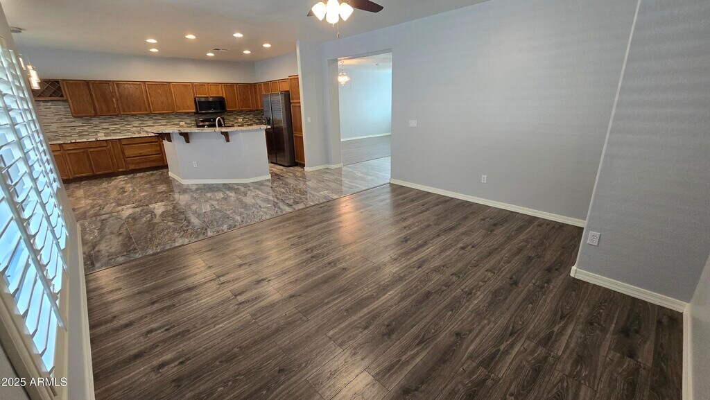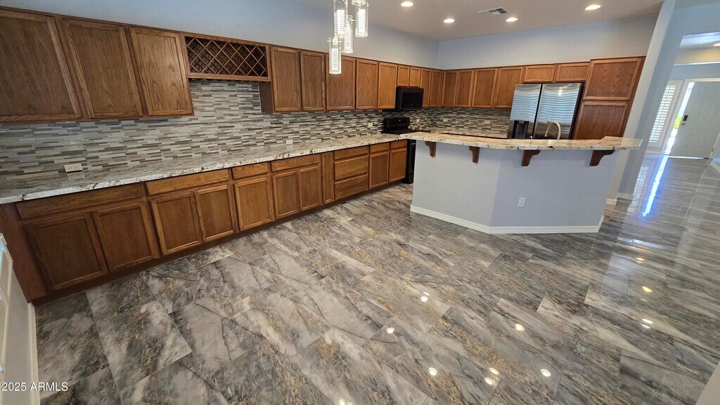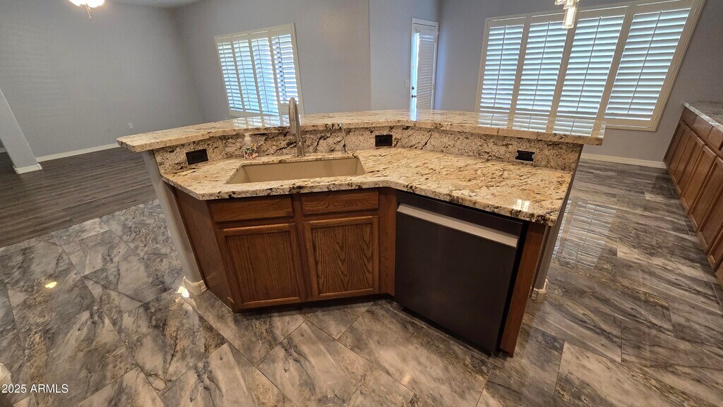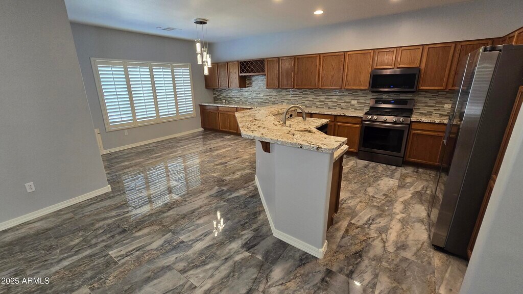 Beautifully updated split floorplan home featuring 3 bedrooms,2 bathrooms,and a den in Surprise Farms! The spacious kitchen offers abundant cabinetry with roll-outs,a large island,and elegant stone countertops. The master suite includes a generous walk-in closet and a separate tub and shower. Enjoy window shutters throughout the main living areas and brand new interior paint. The inviting backyard boasts a sparkling pool,relaxing spa,and plenty of patio space surrounded by lush landscaping. The garage is equipped with ample built-in cabinets for extra storage. Owner Agent Pet rent is $25/month per pet,with a $200 refundable deposit per pet. Pool Service Fee: $150 Tenant Benefit Package: $45/month per adult A must-see!!