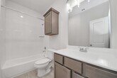 Never lived in beautiful home on corner lot. First floor has living and dinning area together with a huge kitchen featuring quartz countertops and top of the line appliances with refrigerator and corner pantry. Laundry room off entrance is big enough for folding table. 2 good size bedrooms share a full sized bathroom and the back of the house offers a good sized primary bedroom with ensuite bathroom. Double Sinks,shower with sitting bench and a huge closet with shelving. Second floor with an incredible game room and a good size bedroom with a full bath. Backyard has a cover patio perfect for grilling and entertaining. Come see for yourself if this house is the perfect home for you. MLS# 2415091