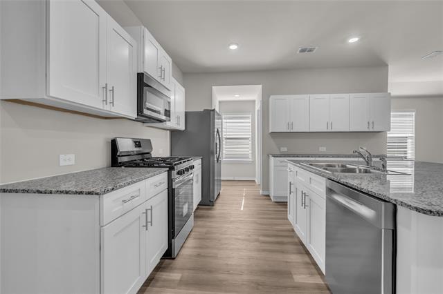 Brand new Justin single story 4-bedroom, 2 bath home at Lonestar at Liberty Trails, a fabulous unique master planned community in Justin and Northwest ISD! The popular single-story Kingston Floorplan is incredible, open and large bedrooms with a large, covered patio. Designed for modern living, this home offers an open-concept layout connecting the family room, dining area, and chef-inspired kitchen, complete with a large seating island, granite countertops, stainless steel appliances, gas range, built-in microwave, and a wide pantry. The primary bedroom includes a walk-in closet and a bathroom with a wide Sile stone-topped vanity and a 5-foot oversized shower with a glass door. Luxury vinyl plank flooring flows through the entry, hallways, oversized family room, kitchen, baths and wet areas. The home includes a Home Is Connected® Smart Home Technology package. Step outside to enjoy the covered back patio, full gutters, and a fully fenced backyard with sod and a sprinkler system-perfect for relaxing or entertaining. Additional features include a gas tankless water heater for energy efficiency. Home includes stainless steel refrigerator in the kitchen, and full-sized washer and dryer in the laundry room. Wood-like blinds thru the home for privacy. Future Community Amenities to include Club House, Dog Park, Fishing Pond, Pickleball, Playground, Community Pool, Splash Pad, Walking-Nature Trails and Sand Volleyball. Situated conveniently near Highway 114 and Highway 287, Lonestar at Liberty Trails provides easy access to key roads, making it ideal for commuting and exploring the surrounding areas. Straight drive on 114 East to Westlake, I-35, Roanoke, Southlake, Grapevine and DFW Airport. A booming location with great schools.