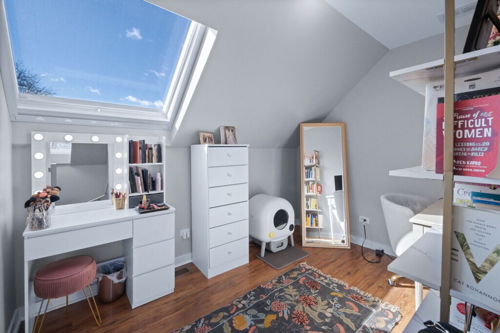 Beautiful and sun soaked big Top Floor 1500sqft 3 bed 2 bath Duplex unit! This unit has it all: Hardwood floors through the main level and matching LVP throughout the rest,4 massive skylights! including automated blackout skylight blinds in the two upstairs bedrooms,in-unit laundry with large frontload washer and dryer,huge primary bedroom with a full length closet,two internal stairwells,massive 11 foot ceilings,huge windows throughout,a large coat closet and additional storage in the back of the upstairs hallway and a giant unfinished basement in the building with enough room to park a car,much less store all your extra items. The building also has a pretty shared backyard and a fenced parking pad with a spot available for an additional $200/month. 1 block away from the 606 and easy walking distance to all the shops on North Avenue,Milwaukee,and transportation like the Damen Blue line and North Avenue bus. This is an incredible place to live and has been my home the last two years. MLS# MRD12595103 Based on information submitted to the MLS GRID as of [see last changed date above]. All data is obtained from various sources and may not have been verified by broker or MLS GRID. Supplied Open House Information is subject to change without notice. All information should be independently reviewed and verified for accuracy. Properties may or may not be listed by the office/agent presenting the information. Some IDX listings have been excluded from this website. Prices displayed on all Sold listings are the Last Known Listing Price and may not be the actual selling price.