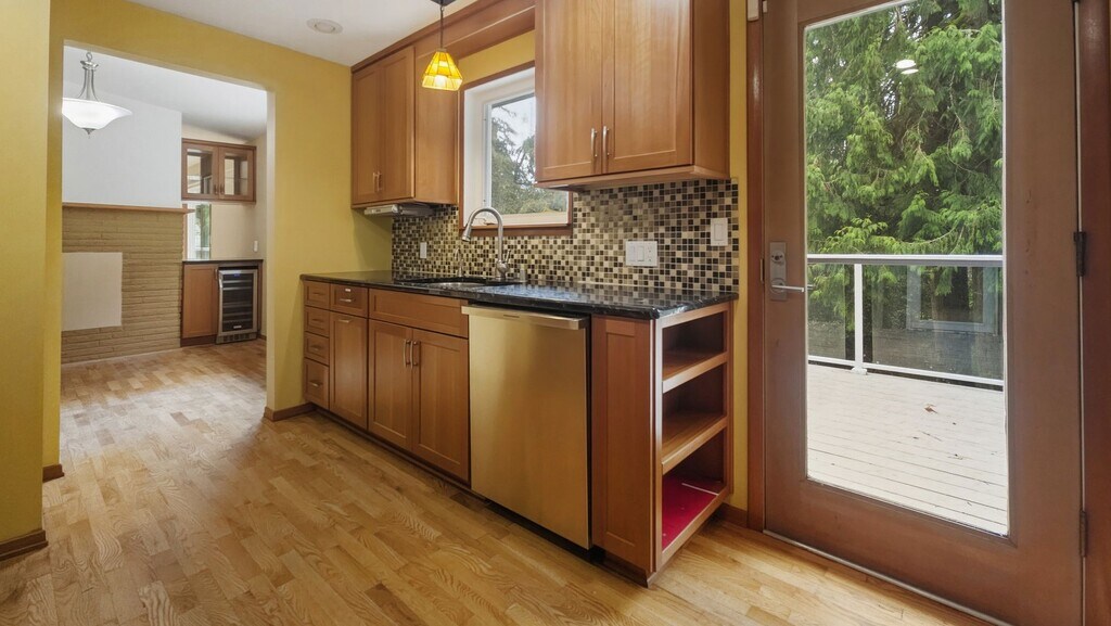This beautifully remodeled 4-bed, 2-bath home sits in an unbeatable Bellevue location just minutes to downtown, Microsoft, I-90, and I-405, all within the award-winning Bellevue School District. The updated kitchen features cherry cabinets, slab granite, and stainless-steel appliances including a gourmet range and hood, while vaulted ceilings elevate the living and dining spaces. An oversized deck with sleek glass railings overlooks a full backyard with a serene creek running through, complemented by updated bathrooms, a newer metal roof, and convenient 3-car parking as well as a private driveway. Terms: Security deposit equal to monthly rent, minimum 12-month lease. Application requirements Credit: Minimum 680 or higher Income: Minimum two times of rent or higher Pets accepted with pet rent applied No current collection or eviction record Please contact our office at for showing. You can also reach out to us at . Applications fee is non-refundable. Looking for responsible tenant/1 year lease required and a chance for renewal. We do not accept an application prior the showing.