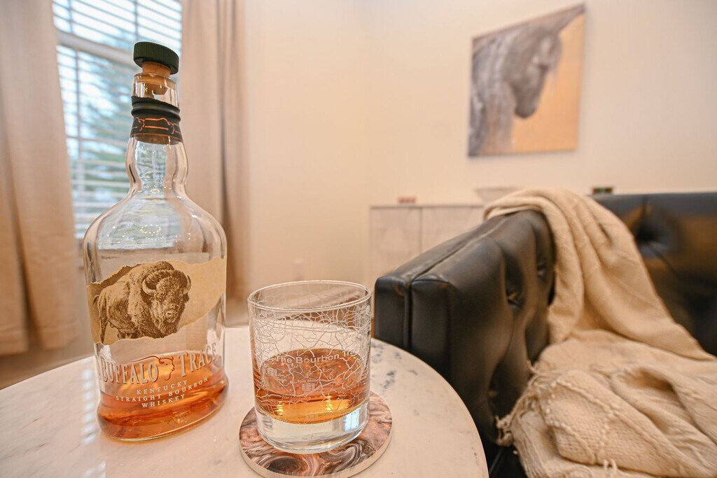 Feel at home in this 4-bedroom, 2.5-bath home in Shelbyville, Kentucky, offering space for everyone. This home features a fully equipped kitchen with modern appliances, cookware, spices, and a stocked coffee bar. The spacious living area includes a smart TV, board games, and cozy seating. Enjoy the game room with a pool table and shuffleboard. For convenience, there is also a washer and dryer. Enjoy the private hot tub, the overground pool (seasonal), the large deck with a grill, and the fire pit area. Free parking is available on-site for multiple vehicles. An electric vehicle charger is available in the garage. Conveniently located in Shelbyville, this home is close to the Kentucky Horse Park, local horse farms, Kentucky Bourbon Trail favorites like Jeptha Creed and Bulleit (within 20 minutes), and the Outlet Shoppes of the Bluegrass (25 minutes away). Downtown Shelbyville, with its restaurants and antique shops, is just 3 minutes away, and Louisville, with Churchill Downs, museums, and nightlife, is 35 minutes away. Keeneland is 45 minutes away, and Lexington, Bardstown, and Frankfort are less than an hour away. Mammoth Cave National Park and Red River Gorge are each 1.5 hours away. Nearby, you'll also find accredited wineries. Supervise children while in the hot tub and do not add bubbles, salts, or oils to the hot tub. It is best to shower before and after hot tub use, and the hot tub is to be used at your own risk. If the hot tub needs water added during your stay during winter months, please do not add water yourselves or use the hose, as it can lead to burst pipes; please let the host know and they will take care of it. There is a camera at the front door and front of the garage for guest security. This is a semi-rural property, so you may see bugs or other critters, but the property is treated regularly. Prior to your stay, you are required to sign and agree to the rental conditions. The primary bedroom is a beautiful room with a king-size bed, luxury mattress, linens, a large smart TV, a sitting chair, and a full-size mirror. The en-suite bathroom is newly renovated in 2023. [SI]