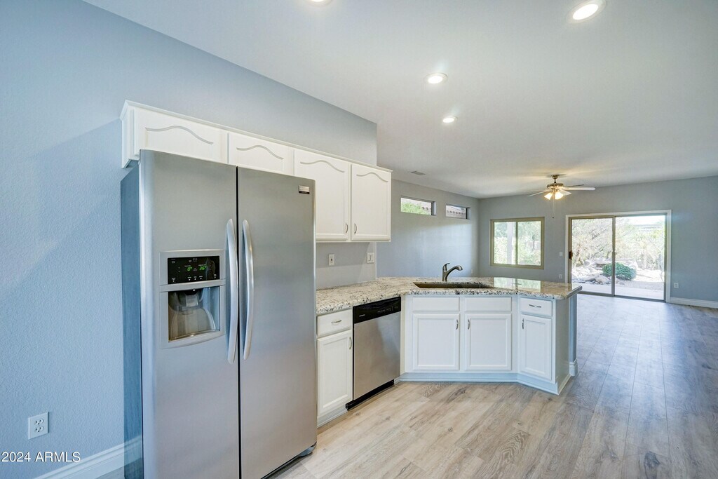 Experience the allure of Surprise,AZ,in The Grand (formerly Sun City Grand),a vibrant 55+ community,with this beautifully remodeled home featuring 2 bedrooms and 2 bathrooms. Inside,bask in abundant natural light streaming through expansive picture windows,and appreciate the elegance of luxury vinyl plank flooring throughout. The property boasts inviting curb appeal and low-maintenance landscaping,highlighted by a charming courtyard. Step into the backyard oasis to discover a stunning waterfall,knee wall,and convenient access to the walking path.