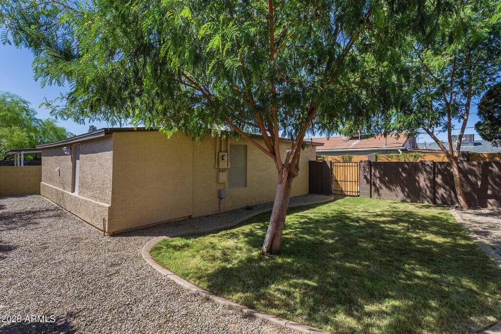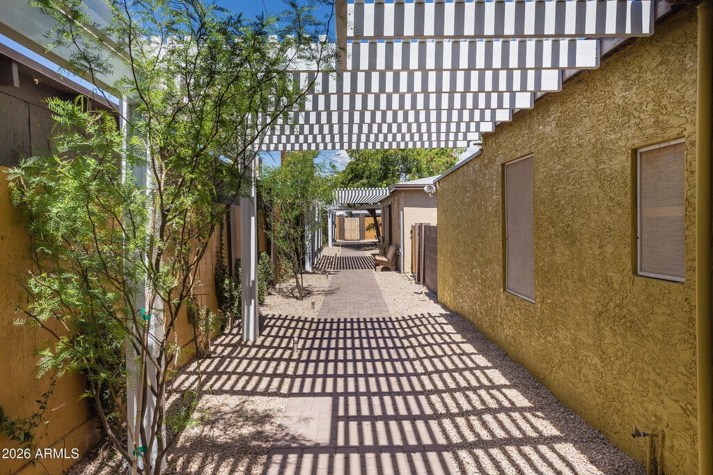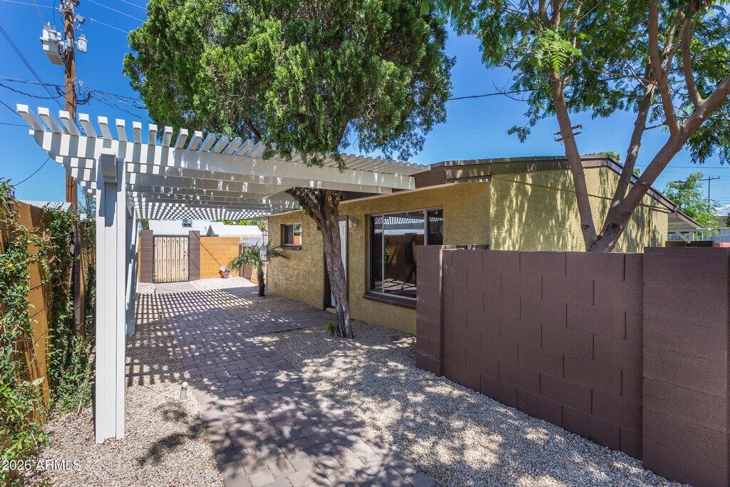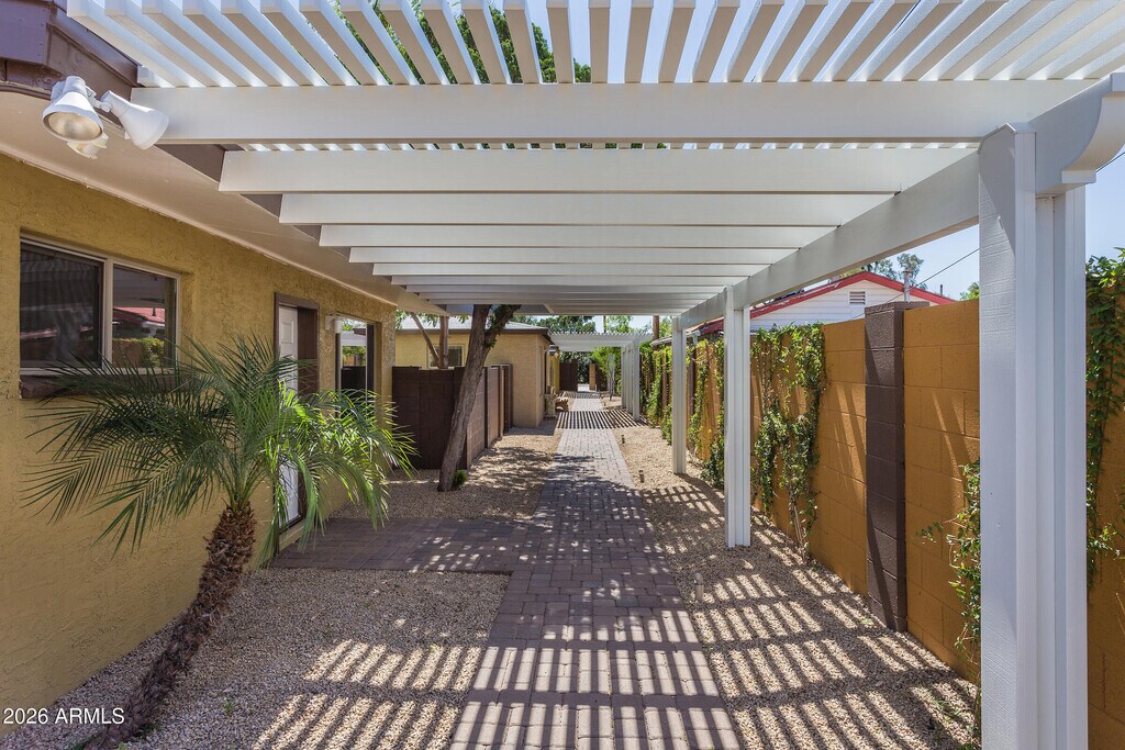 Welcome to Salty Rooster Estates - Unit 1,a beautifully updated residence in a boutique community of just three homes in Central Phoenix. The home features two bedrooms,two bathrooms,plus additional rooms offering flexible space for office,studio,or storage. In addition to the main front door entry,Unit 1 includes a private breezeway,providing a secondary,semi-enclosed area that enhances privacy and functionality. Thoughtfully updated inside and out with updated plumbing and lighting,an updated kitchen with countertops,tile flooring,and refreshed interior finishes. Shared outdoor spaces with shaded pergolas and manicured landscaping create an intimate,oasis-like setting close to shopping,dining,and entertainment.