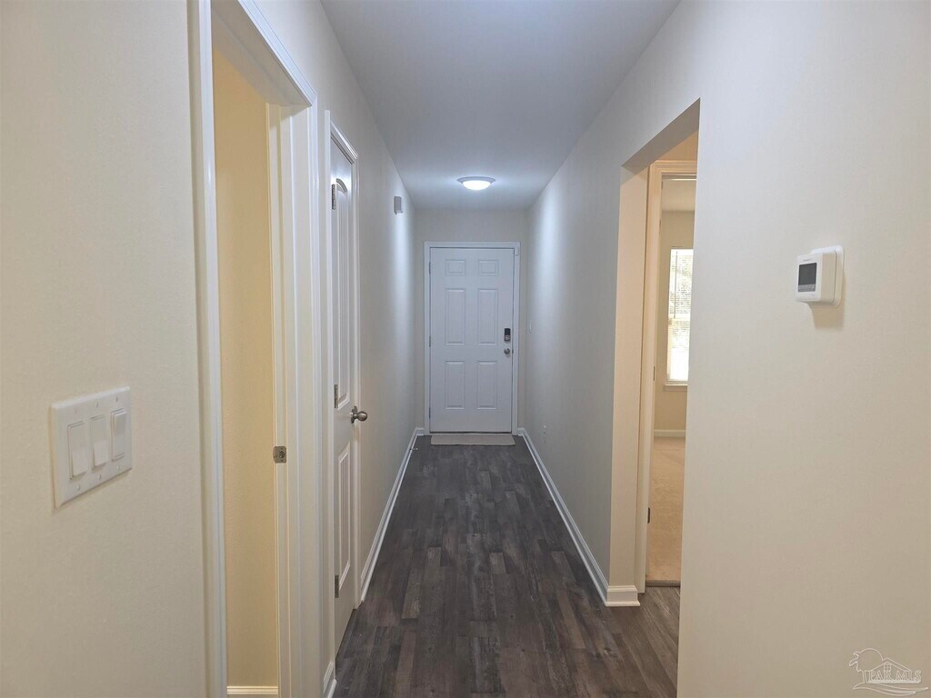 Welcome to this cozy 3BR/2BA brick home,built in 2020 and located in Pensacola. This home offers the perfect blend of comfort,convenience,and modern style. The spacious living/dining combo is ideal for relaxing or entertaining,and the kitchen features a convenient breakfast bar and plenty of counter space. The split-bedroom floor plan places the primary suite at the back of the home for added privacy,with the two guest bedrooms located towards the front. The primary bedroom also includes an en-suite bathroom with two walk-in closets and a large walk-in shower. This all-electric home includes ceiling fans throughout for added comfort and a large indoor laundry room with a washer and dryer for your convenience. Durable LVP flooring runs throughout the main living areas,with carpet in the bedrooms for extra comfort. Outdoor living is easy with both a covered front porch and a covered back lanai—perfect for enjoying the Florida weather. The oversized,privacy-fenced backyard provides ample space for outdoor activities. Additional features include a front-entry 2-car garage. Small pets will be considered with owner approval and a $325 non-refundable pet fee per pet. The location is ideal,just minutes from Perdido Key and the NAS Pensacola Back Gate. No smokers,please. Roommate applicants,if accepted,must apply and qualify individually.