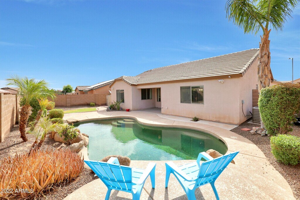 Welcome to your charming new home nestled in the heart of Surprise,AZ! This delightful residence offers the perfect blend of comfort,convenience,and style. Solar Payment and Pool Service are INCLUDED! As you step inside,you'll be greeted by a spacious and inviting open concept living area,perfect for both relaxation and entertaining guests. The open floor plan seamlessly connects the living room to the kitchen,creating a warm and inviting atmosphere throughout. The kitchen boasts modern appliances,upgraded cabinets with undermount lighting,rich slab granite counter tops with tiled backsplash and a convenient breakfast bar,making it a chef's delight. Whether you're whipping up a quick meal or preparing a feast for family and friends,you'll find everything you need right..... at your fingertips. This home features 3 Bedrooms + a Den with double doors and 2 Bathrooms,providing plenty of space for everyone to spread out and enjoy. The master suite offers a tranquil retreat,complete with a large window overlooking the backyard oasis,a walk-in closet and a luxurious ensuite bathroom with separate tub & shower. Outside,you'll find a sparkling pool in the backyard oasis,perfect for enjoying the beautiful Arizona weather year-round. Whether you're hosting a barbecue,swimming,playing with your furry friends,or simply soaking up the sunshine,this outdoor space is sure to become your favorite spot to unwind. Located in a tranquil neighborhood,this home is just minutes away from all the NEW dining and shopping choices at Prasada,parks and entertainment. Plus,with easy access to major highways,commuting to work or exploring all that Surprise has to offer is a breeze. Don't miss your chance to make this wonderful property your new home sweet home. Schedule a showing today!
