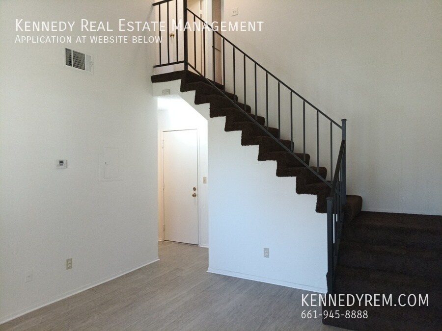 Enjoy the cozy comfort of the vaulted-ceiling living room, where the soaring height adds a sense of openness and character to this welcoming main space—perfect for relaxing evenings or quiet gatherings. The well-equipped kitchen provides essential appliances and conveniences, complete with a practical eat-in dining area that makes everyday meals simple and enjoyable. A handy first-floor half bath offers added convenience for guests or quick stops.Step inside effortlessly from the attached two-car garage, keeping your daily routine smooth and protected from the weather.Upstairs, you’ll find two generously proportioned bedrooms and a full bathroom, creating comfortable, private spaces for rest and personal time.This thoughtfully laid-out home delivers easy living in a compact, efficient package—ideal for low-maintenance comfort and ready for your personal touch. Enjoy access to a large, well-maintained common area yard shared among residents, providing plenty of open green space for relaxation, casual play, or fresh air, all with no maintenance responsibility. The home's prime location is within walking distance to a variety of stores, restaurants, and amenities. You'll have easy access to ALDI, Stater Bros Market, Walmart, Dutch Bros Coffee, The Workz Burgers, El Pollo Loco, Carls Jr, Pizza Hut, McDonalds, Papa Johns Pizza, Del Taco, Jack in the Box, Panda Express, KFC, Subway, Bank of America, Wells Fargo, Goodwill Thrift Store, churches, and salons. In addition, this home is only 21 minutes from the south entrance of Edwards AFB, making it the perfect location for military personnel and their families. Don't miss out on the opportunity to call this wonderful property your new home. Schedule a viewing and make this your new home!