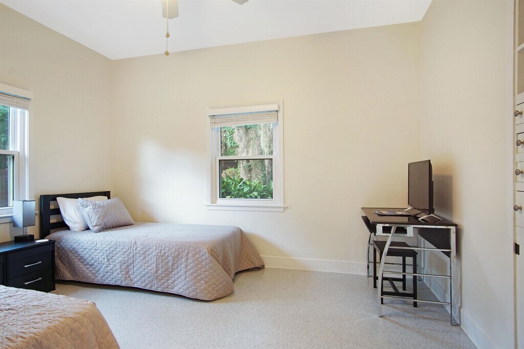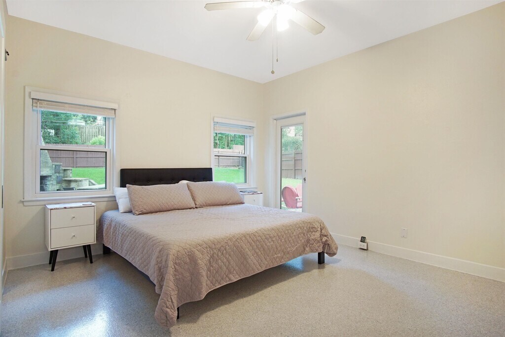 Fully furnished lakefront home in the heart of Midtown! Available for short-term or long-term rental. Sitting directly on Lake Ella,this piece of Tallahassee history offers peaceful views,stylish interiors,and unbeatable walkability. It is just steps from Lake Ella's shops and cafes,and walking distance to vibrant Midtown,but still with a peaceful,neighborhood feel. With five exterior doors connecting indoor living spaces to tranquil patios,this home invites effortless movement between cozy interiors and peaceful outdoor retreats. The privacy-fenced,Edison light lit backyard features a fireplace and storage shed. Inside you will find an open floor plan,high ceilings,old world charm,and modern updates. The main living area features two sofa couches,a recliner,a 6-seater dining table,and a high-top bar. The primary bedroom is home to a king bed,an en-suite bathroom,dual closets with built-in drawers,and private access to the back patio. The second bedroom has a king bed with storage drawers,2 closets,a sofa,and French doors opening to stunning lake views. The third bedroom has two twin beds (can be converted into a king upon request),a large closet with built-in drawers,a desk with a Roku television,and backyard views. The kitchen is stocked with all the essentials and ready for anything - from a quick breakfast to a home-cooked dinner,plus a Keurig coffee maker,Brita water filter,tea kettle,toaster,air fryer,and rice maker. Additional amenities include a front door smart lock with keypad and fingerprint access,a smart living room television with a Blu-Ray player,board games,playing cards,towels,sheets,a washer and dryer,a charcoal grill,cornhole,kids toys,a pack-n-play,a high chair,and an umbrella stroller. All you’ll need is your suitcase! This home features a 2-car driveway and plenty of street parking. Lawn care and pest control is included. Fiber optic wifi and utilities can be included at an additional rate.