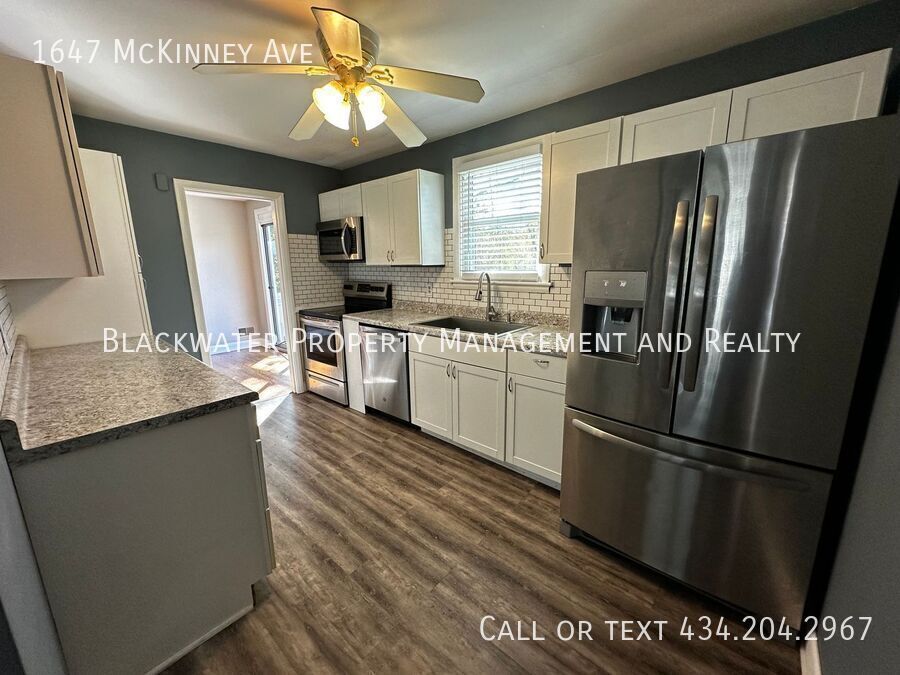 Welcome home to 1647 McKinney Avenue! This beautiful 3 bedroom, 1 bathroom home is in the heart of Lynchburg with quick access to Wards Road, Timberlake Road, local universities, and all your shopping, dining, and convenience needs! Walk in and enjoy the large living room with decorative fireplace which opens to the dining room and kitchen with granite countertops and stainless steel appliances including range, dishwasher, microwave, and refrigerator. The main level also offers two bedrooms and shared hall bathroom. In the partially finished basement, find the additional bedroom, laundry room with washer and dryer included, as well as plenty of storage space. Off street parking available in the front of the home as well, with large shed in the back for additional storage. This property is pet friendly under our standard pet policy: Two Pet Maximum, Weight not to exceed 35lbs, breed restrictions apply. There is a $300 non-refundable pet fee per pet and $25 monthly pet fee per pet. Tenant responsible for all utilities and yard maintenance. $45 Non-Refundable Application Fee Per Person/Guarantor. None