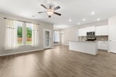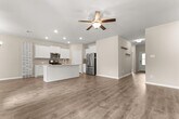 An open/split floor plan provides a comfortable atmosphere to visit and relax! Kitchen amenities include a gas range/oven, built-in microwave, dishwasher, refrigerator, double stainless steel sink, walk-in corner pantry, butler/coffee bar area, and island with breakfast bar seating. The dining and living areas both have large windows overlooking the patio and backyard area. Nice foyer/hallway entrance from front door leading to open living area. Primary bedroom floor has been upgraded to Lifeproof Planks. Primary bathroom boasts double vanity sinks, a soaker tub, step-in shower and large walk-in closet with built-in shelves. Ceiling fans located in primary bedroom and living room as well as recessed lighting in home. Neutral colors; wired for security; wood laminate and tile flooring. Privacy Fenced back yard with both covered and uncovered patio areas. Located within walking distance to nearby golf club, public park, event center and walking trails ~~ with the new water park now open! Flood Zone X as per LSU Ag Center.