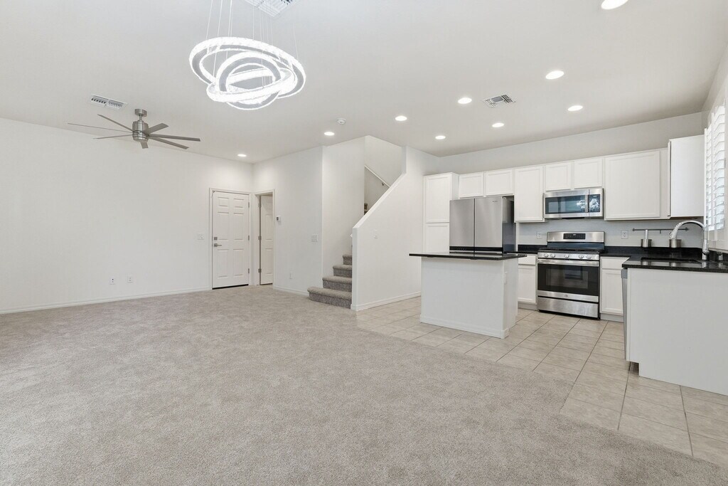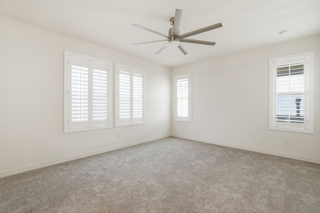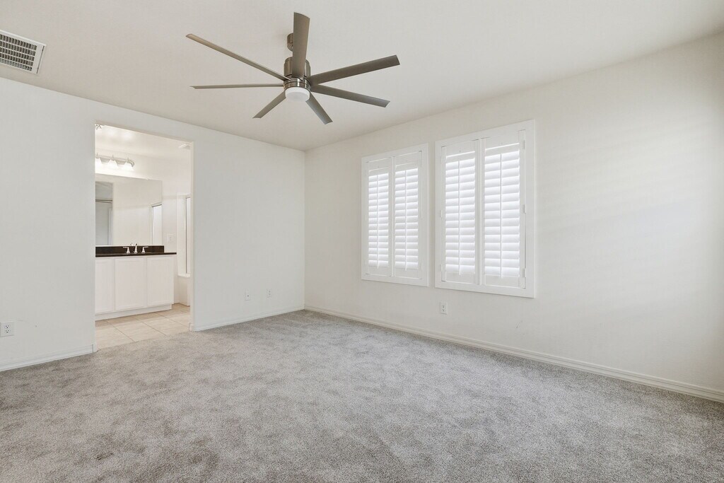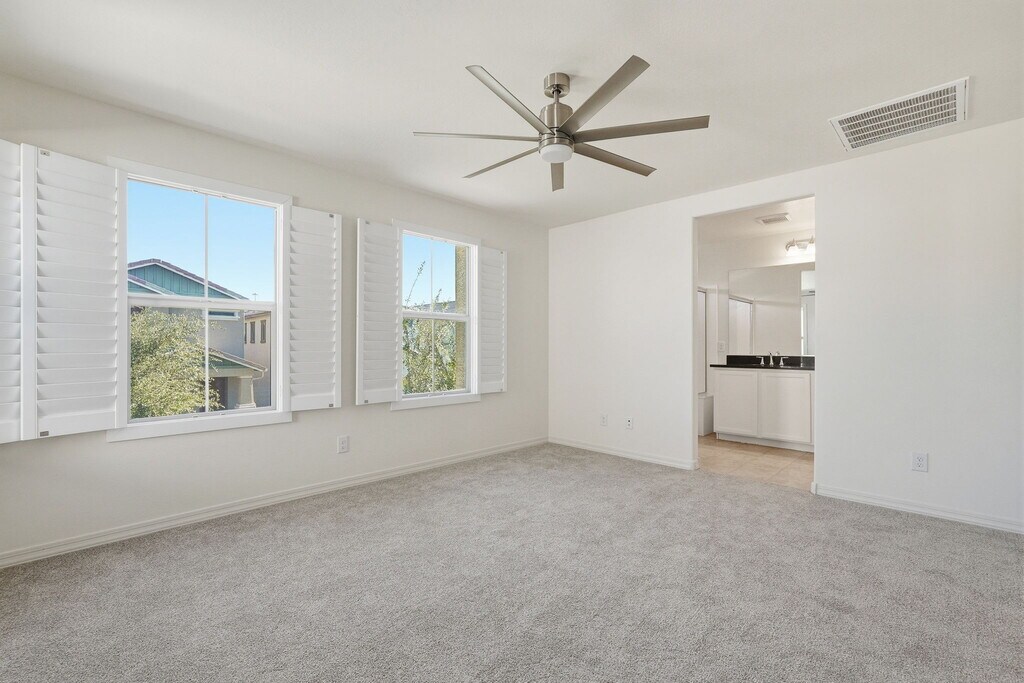 This beautiful Mesa home sits in a prime location right at the corner of the 202 and 60 freeways, offering unbeatable access to the East Valley. The property features a bright, open floor plan with modern finishes, neutral colors, and plenty of natural light throughout. The kitchen includes sleek cabinetry, granite counters, stainless-steel appliances, and a smart faucet, opening to the living area. Upstairs, you'll find a dual primary bed/bath setup with walk-in closets. The home also includes a two-car garage, plantation shutters, and a clean low-maintenance yard maintained by the HOA. This is a fully connected smart home with phone-controlled lights, locks, and thermostat, plus a Ring doorbell for added convenience. Stylish, modern, and close to shopping, dining, and major freeways—this Mesa rental is ready for move-in.