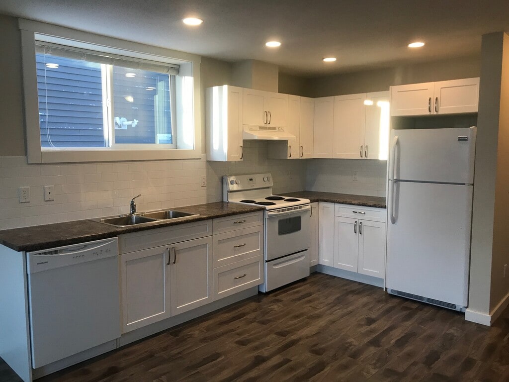 Lovely 2 bedroom, 1 bath daylight basement suite. Spacious rooms throughout. White kitchen complete with dishwasher. Full sized washer and dryer. Great area near parks and school.