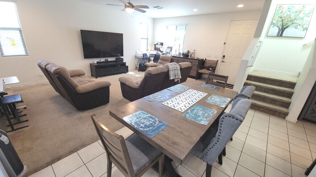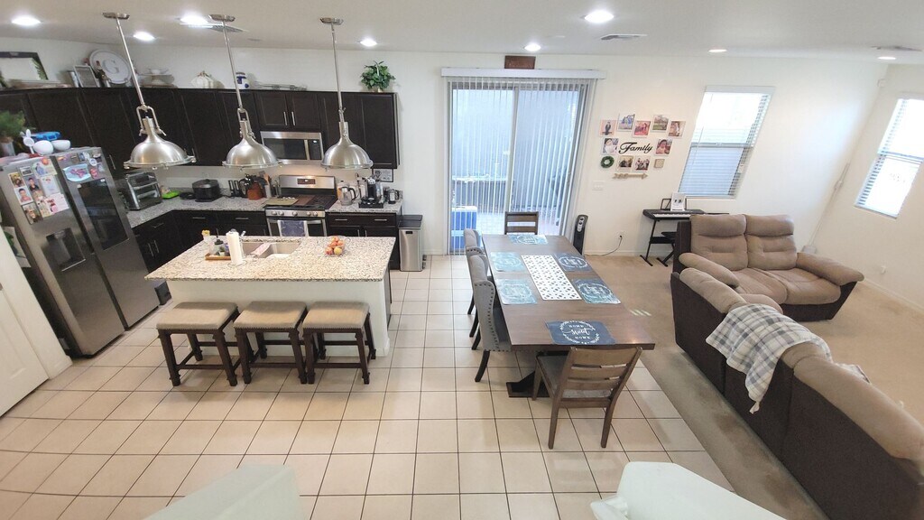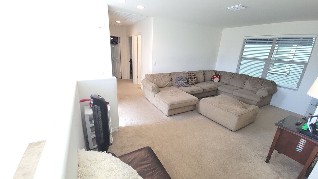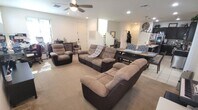 Spacious 3-bedroom, 3-bath home located in the desirable Heritage Crossing community. Built in 2020 and a corner lot, this open-concept floor plan offers exceptional versatility, featuring three separate living areas and access to luxurious, resort-style amenities. The main living area flows seamlessly into a grand kitchen, with a dining space conveniently situated between the two. Upstairs, you’ll find an additional expansive living area, perfect for a media room, home office, or play space. The three generously sized bedrooms are arranged in a split floor plan, providing added privacy for the primary suite. The primary retreat includes a large en-suite bathroom and an oversized walk-in closet designed to accommodate even the most extensive wardrobes. With bathrooms on both levels, this home offers a highly functional and efficient layout. Step outside to relax in your private fenced yard, or take advantage of the community’s impressive array of amenities. Enjoy a day at the resort-style pool and gazebo, or explore the many parks featuring activities like ping pong, cornhole, and chess. There’s something for everyone, including walking trails, biking trails, BBQ & picnic areas, spaces for children, adults, and even a dog park. Conveniently located near shopping, schools, restaurants, entertainment venues, golf courses, and freeway access, this home provides both comfort and accessibility for any lifestyle.