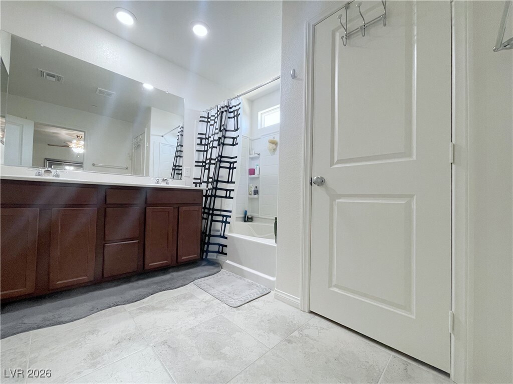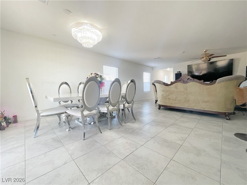 Showcasing like a model home, this immaculate 5-bedroom, 3-bath residence perfectly balances style and convenience. The bright, open floor plan features elegant tile flooring throughout the main level, leading to a chef’s kitchen complete with granite countertops, a center island, and abundant storage. A rare downstairs bedroom and full bath offer the perfect setup for guests or a home office. Nestled on a spacious corner lot in a peaceful neighborhood, this home is designed for effortless indoor-outdoor living with a private covered patio. You’ll enjoy unbeatable proximity to Summerlin’s premier dining and shopping, the tranquil lake shore, and Sun City Summerlin, all with quick access to major freeways.