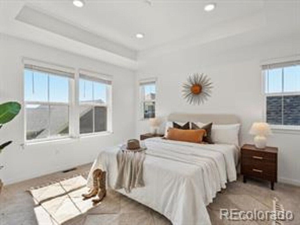 Welcome home to this nearly-new, move-in ready home in Erie. Perfectly positioned within the highly ranked Boulder Valley School District and just minutes from charming Downtown Erie, this home is truly in the perfect location. Step inside to find a thoughtfully designed main floor with large, sun-filled windows that brighten the open-concept living and dining areas. The kitchen features a spacious island with seating, stainless steel appliances, generous cabinet space (lots of built-ins), and a walk-in pantry. Just off the kitchen, the mudroom connects to the two-car attached garage and offers additional storage to keep your entryway tidy. A main-floor bedroom (currently staged as an office) and full bath provide flexibility for guests or remote work. Upstairs, you’ll find three additional bedrooms, including a spacious primary suite complete with double vanities, a walk-in closet, and an en-suite bath. A second full bath is shared by the secondary bedrooms, and the conveniently located upstairs laundry makes everyday living easy.The full unfinished basement has permits already pulled, offering a blank canvas for future expansion. Whether you're dreaming of a home gym, guest suite, or playroom. Outside, enjoy a private patio and fenced-in yard perfect for your furry friends or summer BBQs. With green space right out front, alley access behind, and an unbeatable location for commuting to Denver or Boulder, this is a home that checks all the boxes.