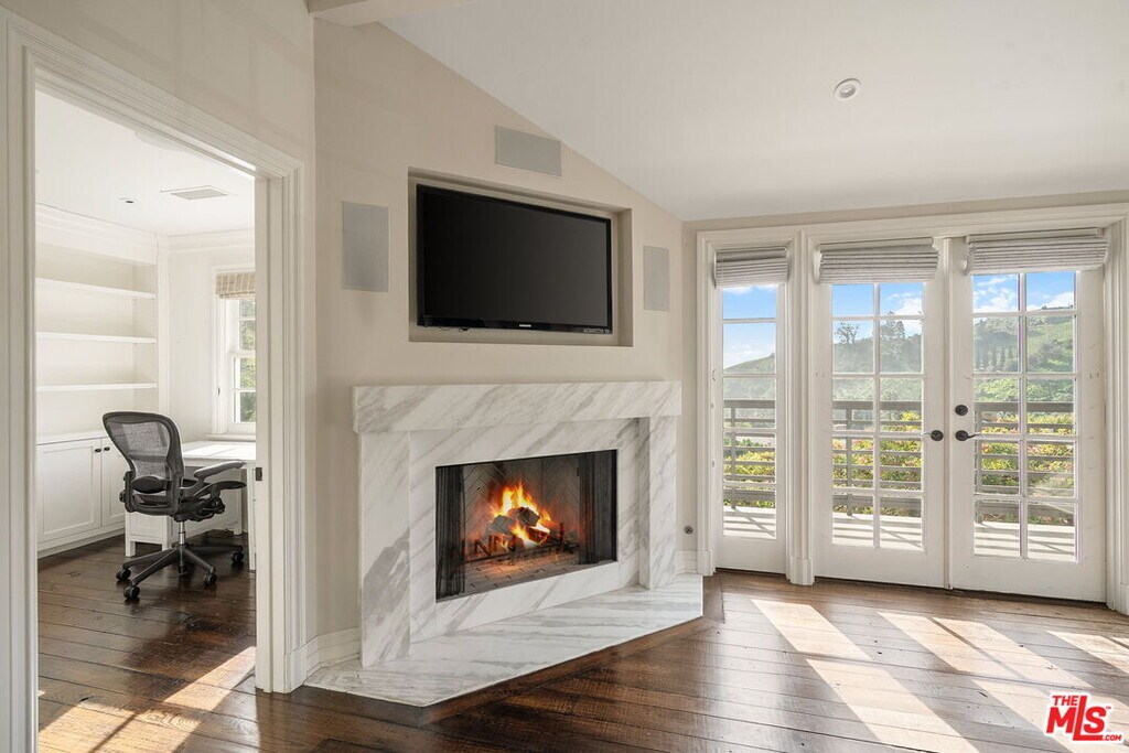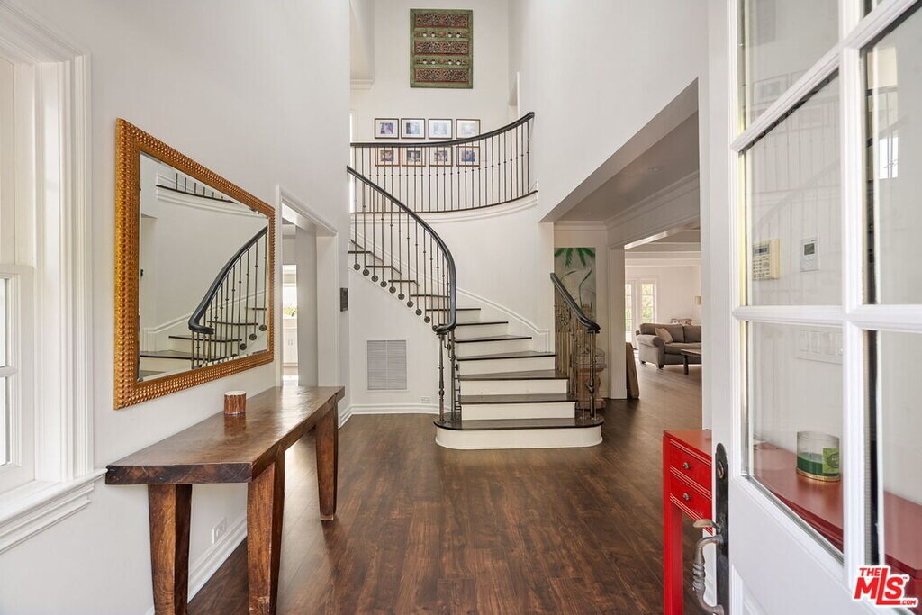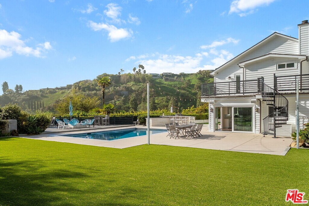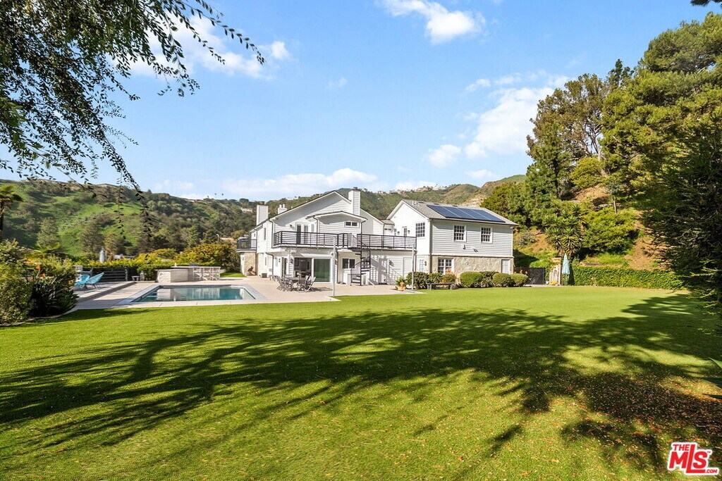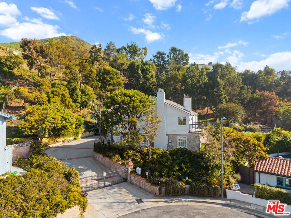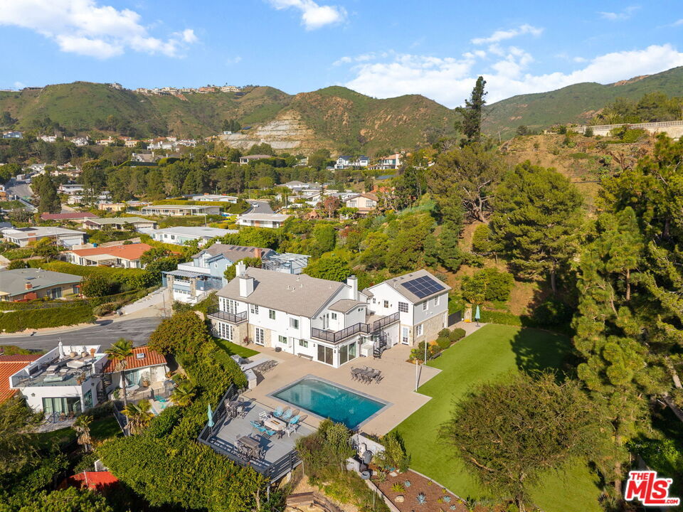Set on an acre, this is one of the largest and most desirable sites in Marquez Knolls. This rare, park-like property offers expansive flat grounds, hillside privacy, mature trees, pool, hot tub, outdoor kitchen, and entertainer's deck with fire pit - all with canyon and ocean views to Catalina and Palos Verdes. Privately gated at the end of a cul-de-sac, this two-story East Coast Traditional was renovated in 2009 by Albino Construction and feels a world away from the burn areas in the Palisades. Grand entry with sweeping staircase, skylight, and exposed beam ceilings opens to formal living and family rooms with fireplaces, French doors, and custom built-ins. Gourmet kitchen features top-tier appliances, center cooktop, breakfast area, ocean views, and direct yard access. Separate studio/media room with murphy bed and full bath provide flexible living. Primary suite includes hardwood floors, luxurious bath, and private balcony with panoramic ocean views. MLS# 26635159