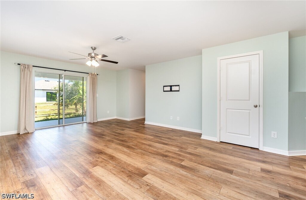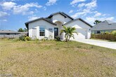 Built in 2022,this nearly new 4-bedroom + den,2-bath home with fenced in back yard,offers 1,853 square feet of stylish and functional living space. The heart of the home is the beautifully designed kitchen,featuring white shaker cabinetry,granite countertops,a breakfast bar,and stainless steel appliances. A versatile den with custom woodwork and barn-style French doors provides the perfect space for a home office or additional living area. Modern plank tile flooring flows throughout the main living spaces,while cozy carpeting enhances the bedrooms. The spacious primary suite offers a relaxing retreat with an ensuite bath that includes dual vanities,a tiled glass-enclosed shower,and a soaking tub. Additional conveniences include an in-residence laundry room and a rear lanai overlooking the fenced backyard,perfect for outdoor enjoyment. Equipped with storm shutters and situated in an X zone,meaning no flood insurance required,this home provides peace of mind. Conveniently located just off Route 82,enjoy quick access to Fort Myers and the rest of Southwest Florida. Don’t miss this exceptional opportunity!