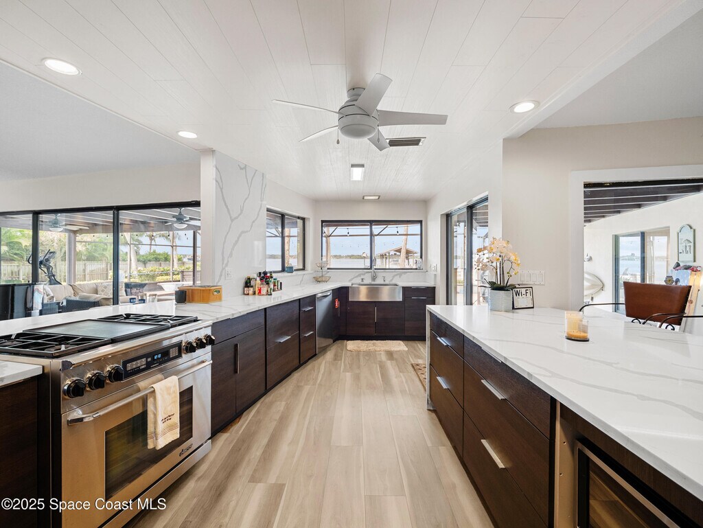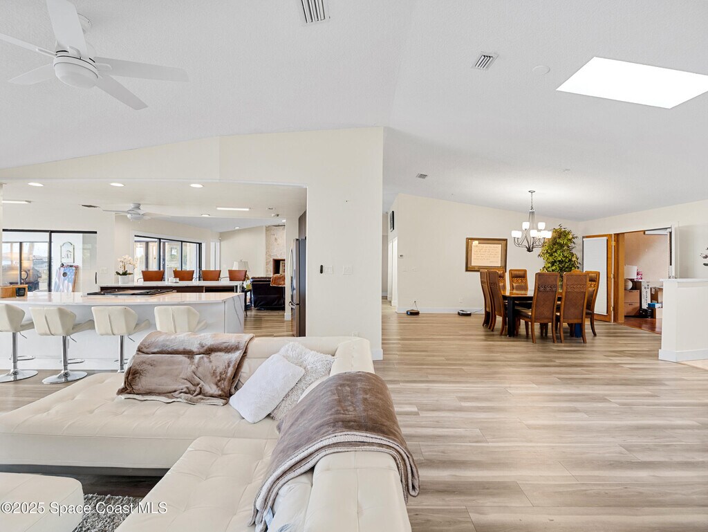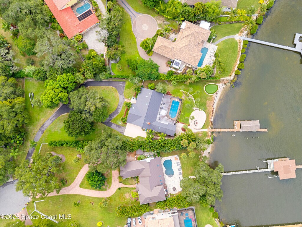 Luxurious Waterfront Island Home Step into paradise with this fully furnished,single-level,waterfront,luxury,island home. Nestled on over an acre of private beach along the deep Intracoastal Waterway,this 5-bedroom gem offers breathtaking sunsets and abundant wildlife. Additionally,the property includes a studio apartment,perfect for multigenerational living. 3 Car Garage! Conveniently located just 45 minutes from Orlando,30 minutes to Kennedy Space Center,and 8 minutes to pristine beaches. Enjoy direct waterfront views from most rooms and access to the pool. The primary bathroom features Turkish marble floors,a Jacuzzi tub,and a three-head waterfall shower system. Entertain in style with a spacious great room,complete with a Baldwin baby grand piano and stunning waterfront views. The newly designed gourmet kitchen seats eight & offers panoramic views and pool access. Dine with elegance as another eight-seat dining table also shares these views