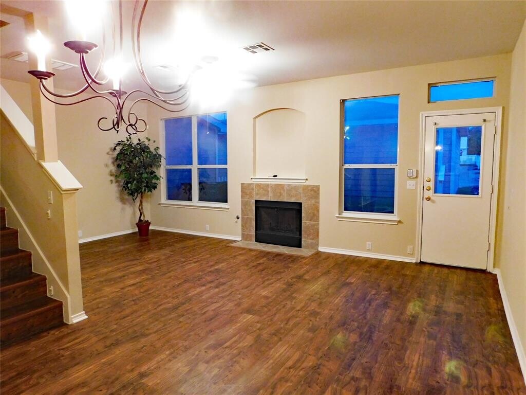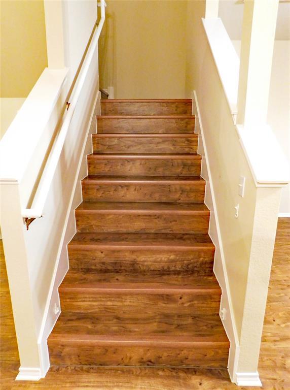 Great Plum Creek Subdivision has the schools in the subdivision, so the kids can walk or ride a bike to school. 3 Bdrm, 2-1/2 Bath with two car garage, you get to from the alley behind. All fences between the houses are the shorter white picket fences for the safety of the neighborhood. You can see your kids playing down the block. Our Living Room, Dining Room, Kitchen, Breakfast Room, Entry Hall, and Half Bath are downstairs. Upstairs, the Primary Bdrm with its bath at the top of the stairs, two other bdrms, a Hall Bath, and the Utility Room. Carpet upstairs in the bdrms only and looks great. Freshly cleaned and not a spot on it. The rest of the house and stairs feature a Luxury Laminate flooring, and the fireplace in the living area is a popular feature. The kitchen got a little facelift recently with a patterned backsplash. A great little place to call home. Come see.