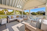 Escape to the tranquil luxury of High Seas, a second-row home located just across the street from the beach access walkway in DeBordieu Colony, Georgetown, South Carolina. This exquisite coastal retreat offers a perfect blend of modern luxury and Southern charm, making it an ideal destination for families, couples, and groups seeking a memorable getaway. Step inside this beautifully appointed home and feel at home in the open concept living space bathed in natural light. The spacious living room, featuring plush seating and a large flat-screen TV, invites you to unwind after a day of exploration. The gourmet kitchen is a chef's dream, equipped with high-end stainless-steel appliances, butcher block countertops, and all the essentials needed to prepare delicious meals. A breakfast bar provides additional seating and a perfect spot for morning coffee. Each of the six bedrooms is designed with comfort and style in mind. The master suite boasts a king-sized bed, an en-suite bathroom, and a walk-in shower. The additional bedrooms are equally inviting, offering high-end bedding and tasteful décor. The five bathrooms ensure convenience and privacy for all guests. You can also fire up the gas grill for a BBQ feast or relax on the screened porch with a good book. This home includes a crib and high chair, and offers amenities such as a cozy gas fireplace, flat-screen television, well-equipped kitchen with a refrigerator, dishwasher, oven, and stove, expansive deck, ground-level party area with a full gas grill, cable TV, wireless internet, outdoor shower, and a laundry room with a full-size washer and dryer. This home has a Social Membership, which gives you access to the 2 community pools at the Beach Club and dining. A temporary club membership can be arranged for $200 a day. These costs do not cover individual amenity fees, like green fees. The maximum number of cars allowed for this property is 6, and the DeBordieu Colony Community Association charges each vehicle a $20 fee to enter the community, up to a maximum matching the number of bedrooms in the vacation rental property. DeBordieu Colony is a very private oceanfront gated community located near Pawleys Island, South Carolina, on the coast between Charleston and Myrtle Beach. For a fee, most homes and villas offer onsite private DeBordieu Club amenities such as golf, tennis, and multiple dining options to guests. Natural amenities include miles of beach and tidal creeks, an on-site nature preserve with walking trails and bike paths, and a delightful year-round climate. DeBordieu is more than a vacation destination; it is also home to a small number of fortunate folks who enjoy the finest Lowcountry lifestyle as either permanent residents or second homeowners. Come visit DeBordieu for a few days or a week and you may decide to stay forever. No pets are allowed and there is no smoking on the premises. Guests under the age of 25 must be accompanied by a responsible parent or guardian to book the property. Summer check-in day is Friday. Enjoy enhanced cleaning, disinfection, and sanitization with contactless check-ins and check-outs. Our properties are cleaned and sanitized by professionally trained and equipped housekeeper employees who provide higher quality, greater security, and personal accountability. We never utilize third-party cleaning companies and use CDC housekeeping protocols, approved disinfectants, and personal protection equipment. Our linens and terry are cleaned and sanitized at our commercial laundry. Stay connected with wireless internet, making it easy to work from home if needed.