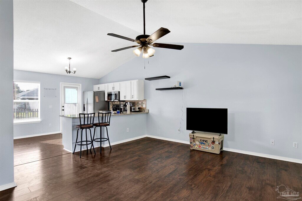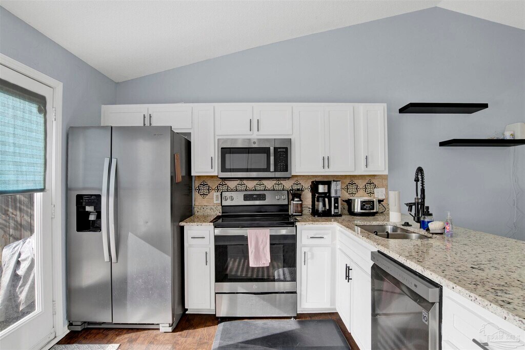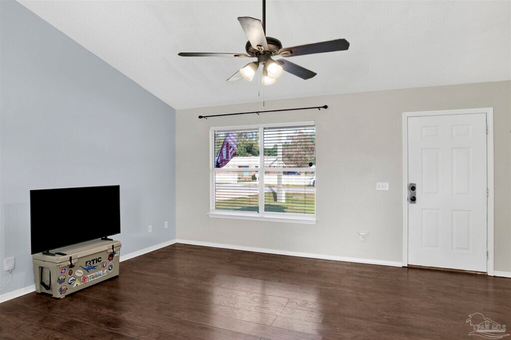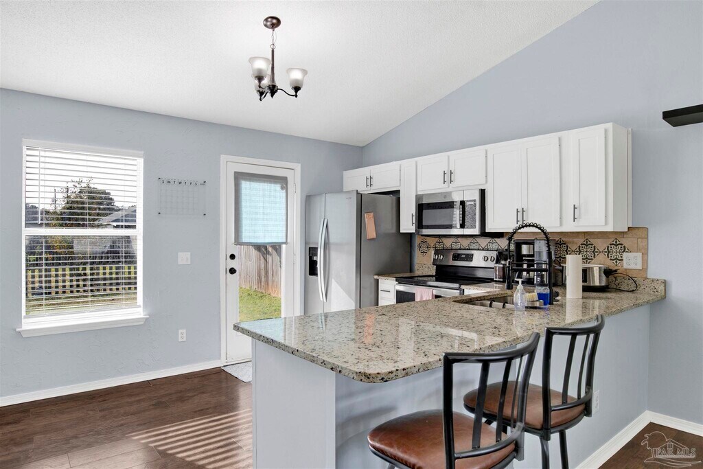 Welcome to this charming 3BD/2BA cottage thats ready for new tenants! This home offers an open floor plan with vaulted ceilings,large windows that fill the space with natural light,and beautiful wood-style vinyl flooring throughout. The kitchen is bright and modern with granite countertops,stainless steel appliances,and updated fixtures. Enjoy a spacious fenced backyard,a covered front porch,and a back patio with a new deckperfect for relaxing or entertaining. A shed provides extra storage,and recent updates include a new roof,exterior HVAC,and hot water heater for added comfort and peace of mind. Located near NAS Pensacola and just steps away from a neighborhood boat and kayak launch on the bayou ideal for those who love the outdoors. Washer and Dryer conveniently comes with the unit. Tenant to pay all utilities. The property will be held up to 14 days with a holding fee and an approved application. A lease prep fee of $75 is due prior to move in. Approved pets require $400 pet fee per pet. Renters insurance required.