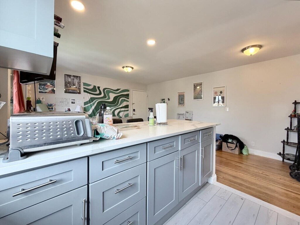 Located just a few blocks from the JSQ path station, this renovated one bedroom apartment is a commuter’s dream. The elevator building has laundry and is on a quiet street. The kitchen has beautiful quartz countertops, shaker style cabinets, gas stove, and built-in microwave.