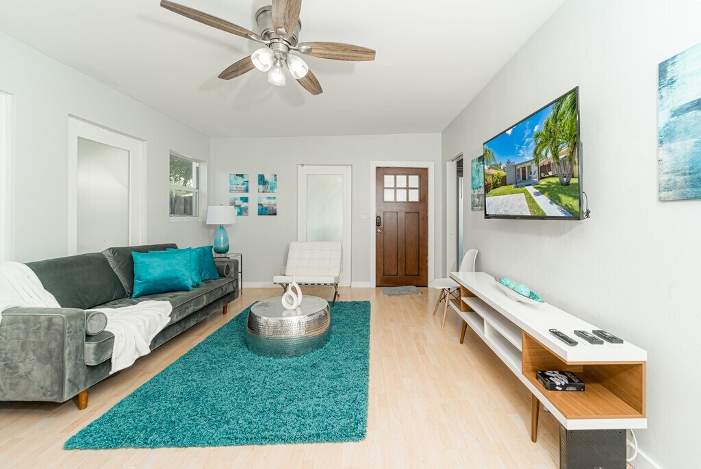 Centrally located in the heart of Hollywood Lakes, just a few blocks to the beach and downtown restaurants and shops. Equipped with full sized front load W/D. Smart thermostat, and security cameras. The furniture shown in these images is for illustrative purposes only!