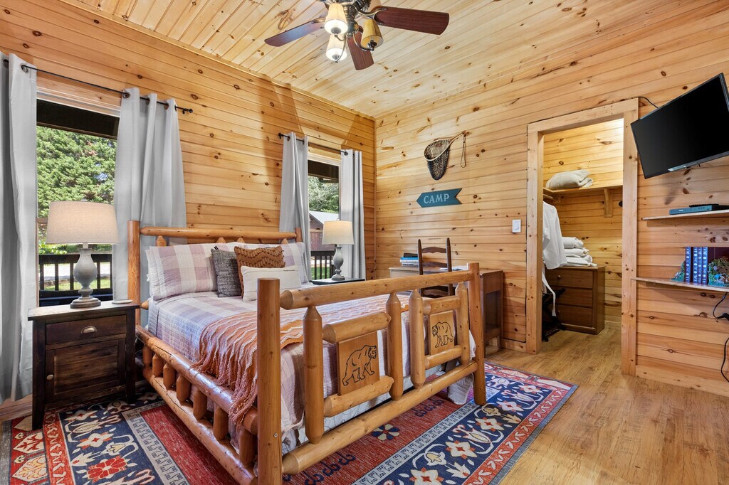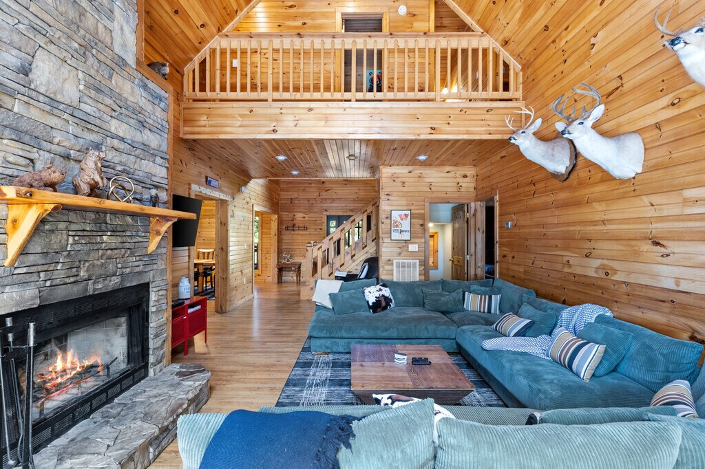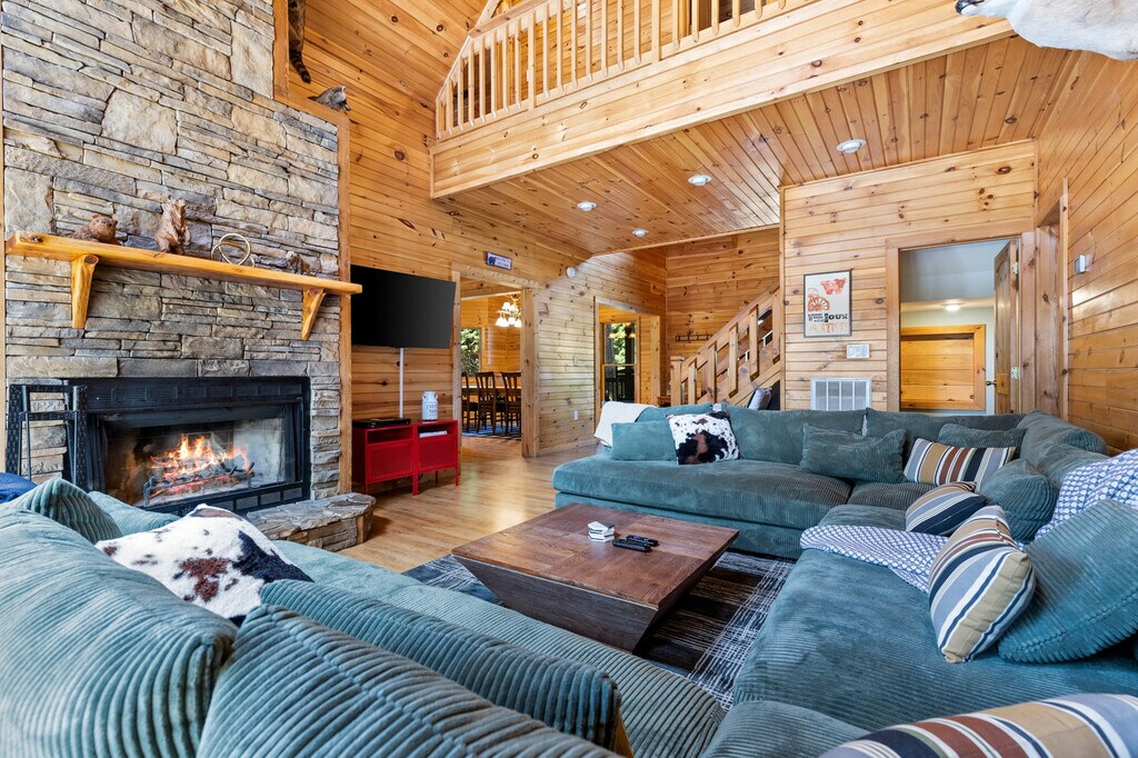 The advertised rate of $10,022/month is the lowest available price, based on a 1 month(s) stay with a move-in date of April 20, 2026. Rates vary depending on the duration of stay, season, and other parameters. For exact pricing and additional pricing components, please visit our website and enter your desired move-in and move-out dates. The rate is applicable when billed upfront; it can be higher if billed in multiple payments. This cabin in Morganton, Georgia, offers everything you need for the perfect mountain vacation, accommodating up to 18 guests. Located just 15 minutes from Downtown Blue Ridge and Downtown Morganton, you'll enjoy easy access to local attractions while relishing the tranquility of the cabin's setting. Experience the ultimate vacation at this exceptional cabin, designed to immerse you in the true essence of mountain living. With two dining rooms, a game room featuring a pool table, arcade games, and board games, and a cozy indoor fireplace, this cabin is an inviting haven for gatherings of all sizes. The hot tub outside is large and well-maintained, always ready for your stay. Ample parking ensures a stress-free arrival for everyone. This cabin is dog-friendly with a non-refundable fee of $125 per stay for up to two dogs. Small events are allowed with prior approval, and you can reach out to ask about event details such as costs and event planner contacts. Conveniently located just 15 minutes away from both Downtown Blue Ridge and Downtown Morganton, you'll have easy access to local attractions. For those seeking outdoor adventures, hiking trails and tubing opportunities are close by. Check-in is at 4 pm and check-out is at 10 am. A $100 fee per hour applies for late check-out. No smoking or vaping is allowed on the property, and a $300 fee per night per animal applies for any unauthorized animal on the property. No parties are allowed, and any violation of the rules will result in immediate removal from the property without a refund. Staying connected is a breeze with high-speed Wi-Fi, and you can unwind with entertainment on the smart TVs. Elevate your leisure time with the Bluetooth sound system, ready to enhance your audio experience. [SI]