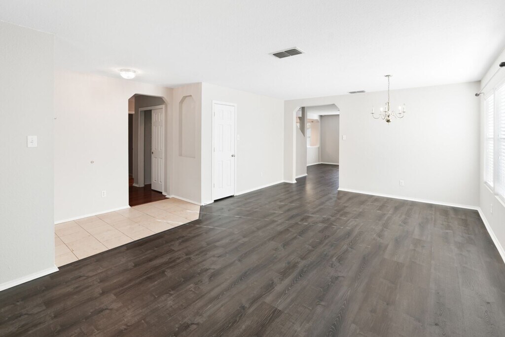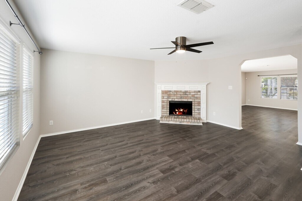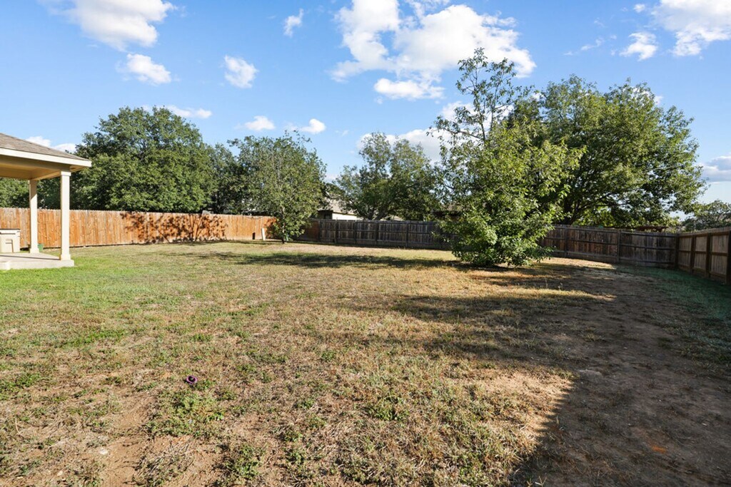 This spacious two-story, 5-bed/3-bath corner-lot home welcomes you with an open floor plan that blends comfort and gathering space. A formal dining and living room set the stage for holidays and celebrations, while the inviting family room features wood-vinyl flooring, a brick fireplace, and a ceiling fan that keeps the space cozy year-round. The bright kitchen offers white cabinetry, stainless steel appliances—including a refrigerator—recessed lighting, generous counter space, and a stylish backsplash. A first-floor bedroom with a full bath provides a perfect setup for guests or a mother-in-law suite. Upstairs, the spacious master retreat feels serene with a recessed ceiling, ceiling fan, abundant natural light, and a large walk-in closet. The ensuite bath includes a garden tub, separate shower, and double vanity for a spa-like start to your day. Step outside to an oversized backyard with a covered patio and privacy fence—ideal for weekend cookouts and unwinding with family and friends. Conveniently located near major highways, Randolph Air Force Base, shopping, and dining, this move-in-ready home offers both comfort and convenience in a prime location.