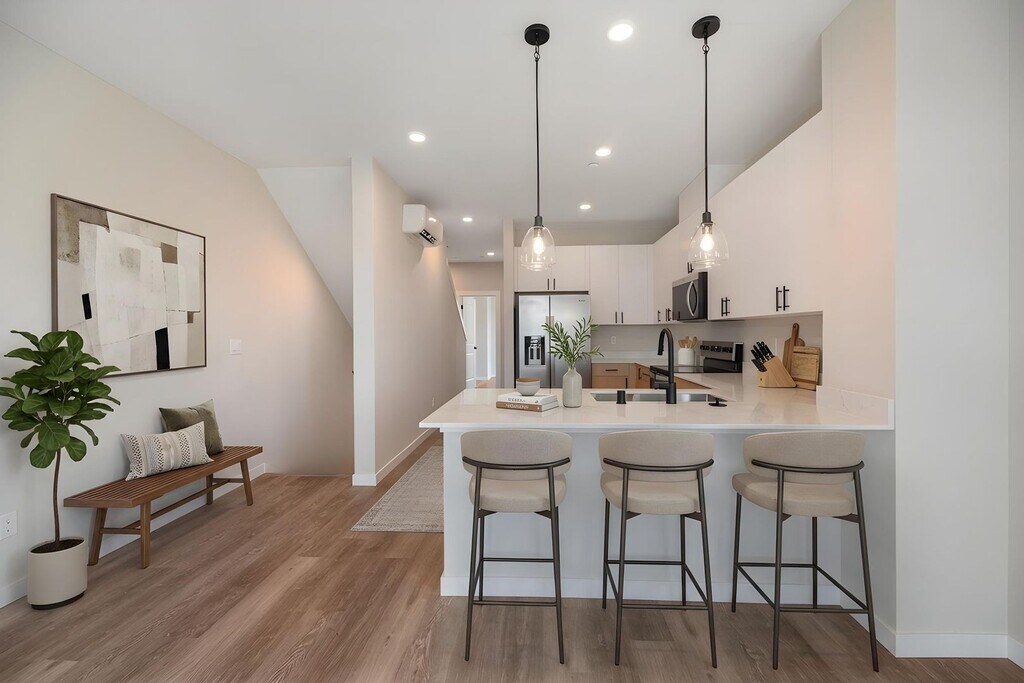 Be the first to experience a perfect blend of comfort, style and modern living in this stunning brand-new home! Natural light pours into the spacious open floor plan and embraces the sleek spacious kitchen featuring high-end finishes, quartz countertops, and brand new SS appliances. Four generous sized bedrooms, one on main level plus large primary suite with ensuite bath and second smaller ensuite bedroom on ground floor. Interior is beautifully finished with durable and stylish LVP flooring throughout entire home. Attached single car garage with EV charging provides secure off street parking. Private, low-maintenance fenced backyard. Mini-split heat/cooling in each room ensures year-round comfort. Unbeatable convenience with easy commute access, mere minutes to Ash Way park and ride. Walking distance to everything you need...shopping, dining and entertainment! Small pets considered case-by-case with added deposit. Don't miss out on this gem! Photos of similar unit, same floorplan. Limited time move-in special! Flexible move in dates and lease terms considered! Contact us for more details.