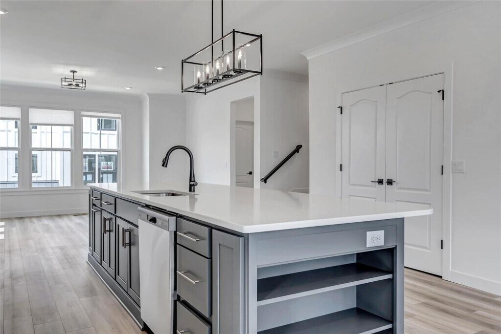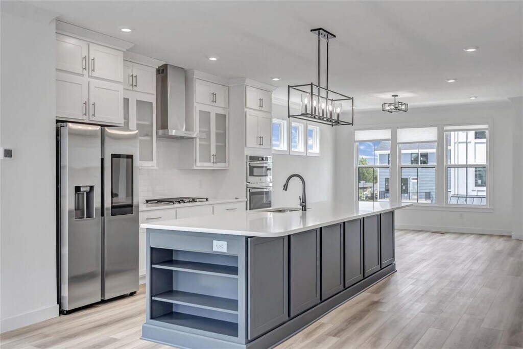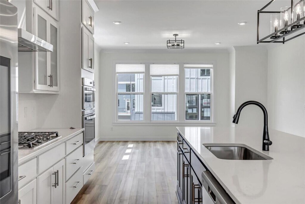 Like New luxury townhome at Wildhorse Village in Chesterfield with 4 bedrooms + 3.5 baths and over 2400 sf! End Unit with partial lake view! Featuring the Clifton Floorplan, a three-story, rear-entry design with open-concept living and 2 car attached garage. Main level includes a sunlit bedroom or office with full bath. The expensive second level has a stunning chefs kitchen, living room with fireplace, breakfast room and half bath. Upstairs includes a master suite with walk in closet, upper level laundry with washer and dryer, 2 additional bedrooms and 1 additional full bath. Finishes include luxury flooring, granite countertops, multi-level cabinets, stainless steel appliances, custom lighting and more! Offering the best of all worlds, this new 80-acre, multi-use development will allow you to enjoy being nestled in a pastoral setting with lakeside views in a big city atmosphere. Low-maintenance living with lawn care, snow removal, and exterior upkeep included! Available December 1.