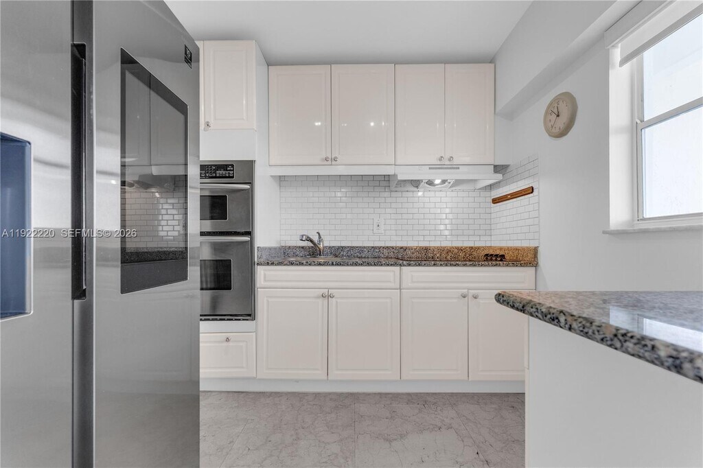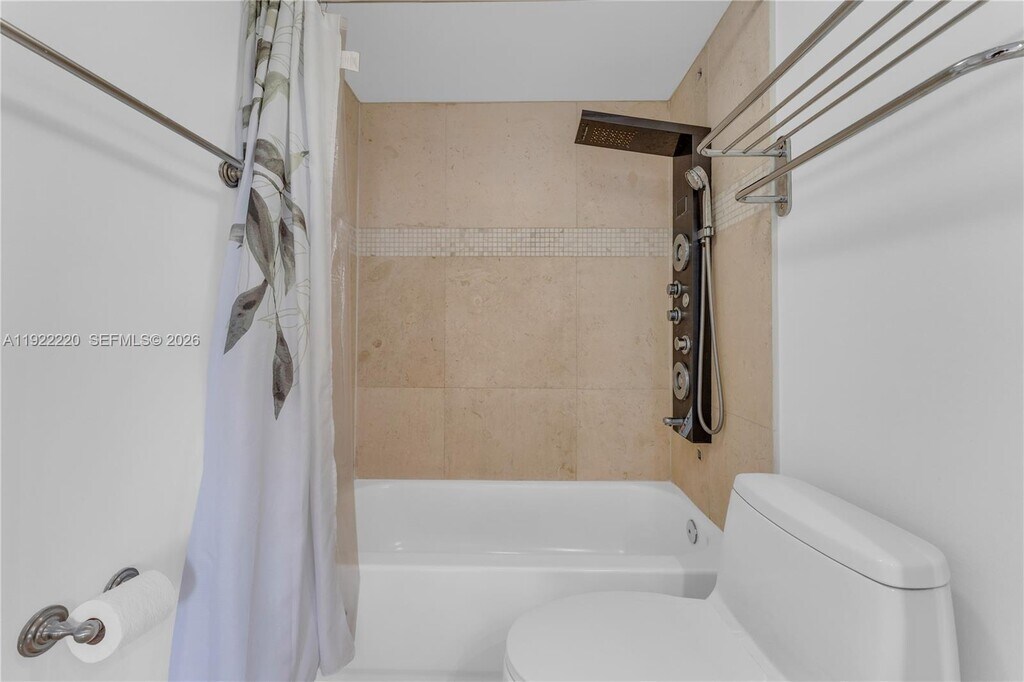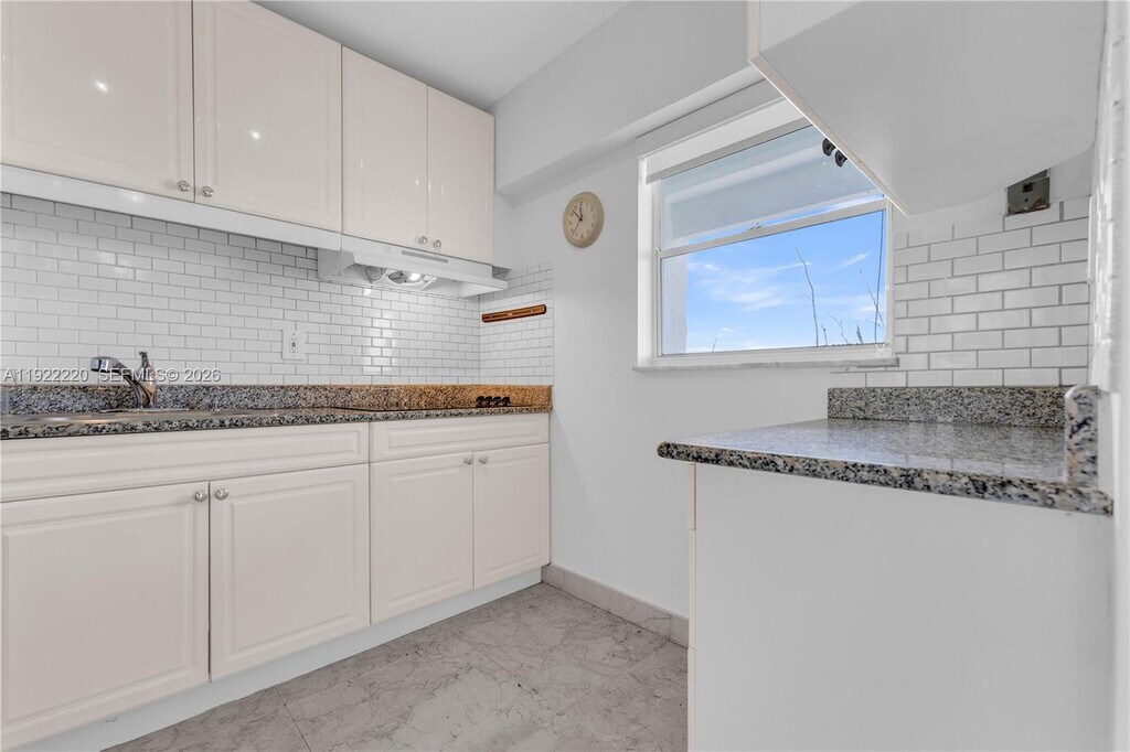 Pine Tower Condo best kept secret. Oversized balcony facing green area(reserve), large unit with 1 bed 1,5 bath, over 800 sqft. Recently renovated, marble baths, kitchen floors, granite countertop. White cabinets, with top of the line side by side refrigerator. 1 walk-in closet and 1 linen closet. Title floors in living area and marble floors in kitchen and bathrooms. Central A/C, LED fan and lights. Electric blinds. Space for dining area. Laminate wood floors in bedroom. Spacious master bath with tub/shower. Building offers assigned parking space, pool, gym, laundry room on first floor. Building located a few minutes from the beach, Costco and FIU North campus. Very close to shops and restaurants. No Pets. MLS # A11922220