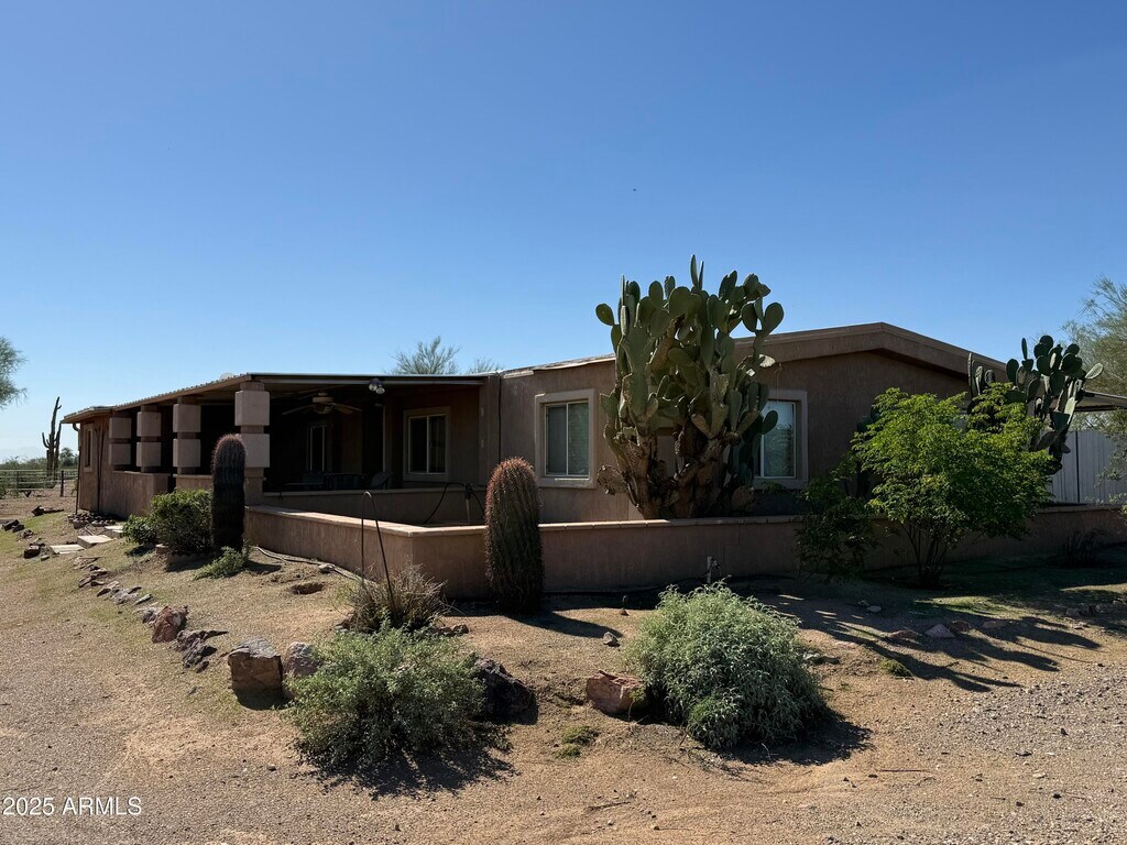 Incredible opportunity to rent a home on 5 acres of horse property! Enjoy desert sunsets and views from the covered porch. Vintage detail throughout the home with built-in shelving,wood-paneling,and cabinets. All bedrooms have been updated with paint and fresh carpet. Washer/dryer are included. Current horse setup features 4 covered stalls,turnouts,and round pen. Also includes a tack room and storage room. Large 2 car carport.