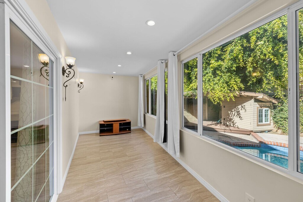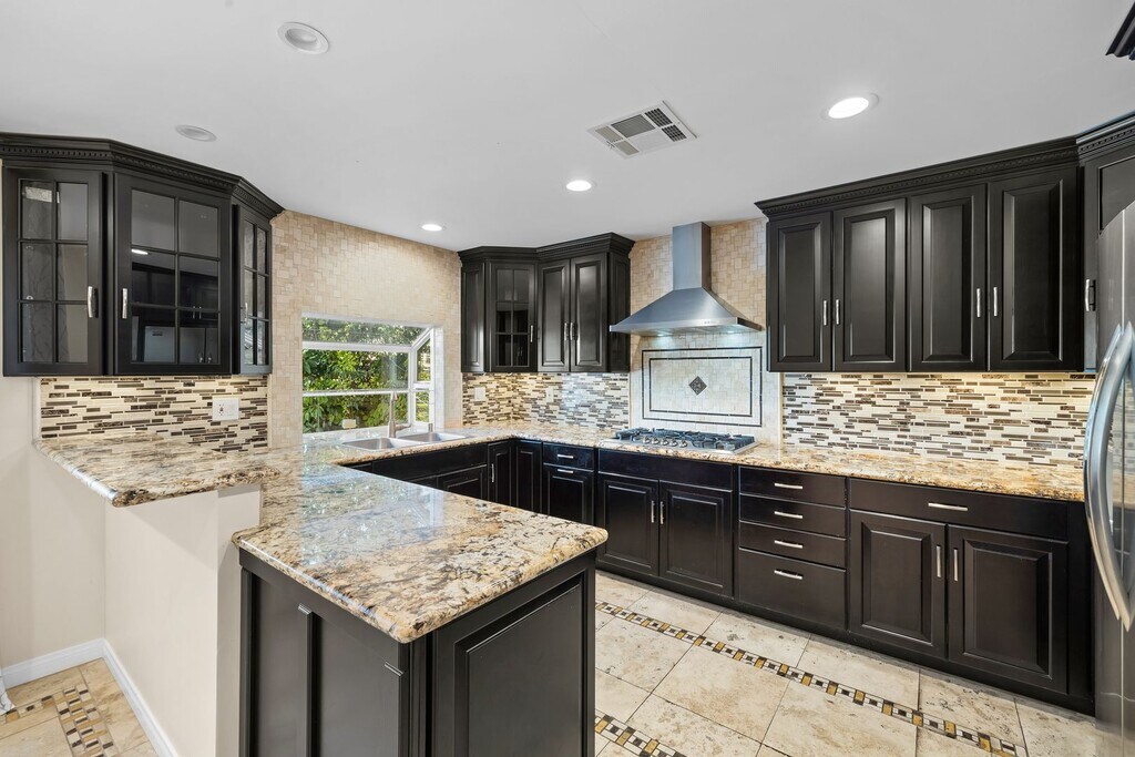 Incredible Opportunity to lease this Gorgeous Pool Home in Encino! Over 3400 Sq. Feet! This 5 BR/5.5 BA home has been Tastefully Designed w/Contemporary Features. 2 Story Entry leads to Elegant Living Room w/Vaulted Ceilings, Chandeliers & Fireplace. Formal Dining Rm for Dinner Parties. Chef's Kit. w/Granite Counter Tops, Ebony Colored Custom Cabinets, Stainless Appliances & Breakfast Bar. Kitchen opens to a Casual Eating Space, Family Room & Wet Bar with Wine/Drinks Refrigerators. Spacious Primary Suite includes 2 Separated Baths & Walk-in Closets w/Built-ins. !st Bath has a Jacuzzi Tub, Vanity, Bidet and Access to the Walk-in Shower creating a Spa-like Oasis. 2nd Bath also features a Vanity, Custom Walk-in Shower & Bidet. 2nd Bedroom includes a Remodeled Bath w/Walk-in Shower & French Drs Leading to Balcony. 3 More Bedrooms & Baths are available. Individual Laundry Rm includes Washer/Dryer. Separate Enclosed Deck leads to Pool, Spa & Patio. Special Features include 2 AC units with WiFi enabled Nest Thermostats, Central Vacuum System, Electric Car Charger in Garage, Ring Doorbell & Security Cameras for Smart Home Protection. Walking Distance to Restaurants, Shops, Parks & Golf Course. Just minutes from 101 and 405 Freeways. Award Winning Encino Elementary. Solar Panels which saves an estimated 300-400 per month on the DWP bill are included with the rent. Owner may consider 1 small pet under 20 lbs. Must have documented income and excellent credit.Enc