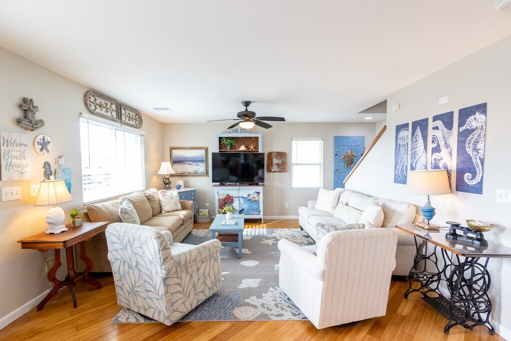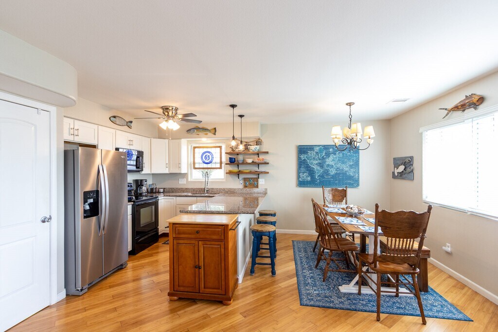 COASTAL CHIC HOME in JAMAICA BEACH! This well-maintained home has everything you need. Dining room w/oversized window overlooking Galveston Island State Park and Gulf allowing ample sunshine. Open concept living/dining/kitchen has granite countertops and easy to care for bamboo flooring. Windows equipped with electric storm shutters. The entire second floor is large primary owners retreat,w/second living room,bedroom and ensuite bathroom & balcony. Step onto the two balconies and enjoy the sunrise over the Gulf. Utility room in house. Oversized double garage that accommodates larger vehicles. Large lot (7446 sq ft),enough room for a pool and outdoor kitchen. Located on Dead End Street. Outdoor shower to wash sandy toes. Short bicycle,golfcart ride to the beach. Boat marina/basin is nearby for fishing,boat sunset cruising. SELLS furnished w/exclusions,$445,000. JB has a city pool,park & pavilion,restaurants,Police/Fire/EMS. Also,FOR LEASE $2450/month. MLS# 10237749