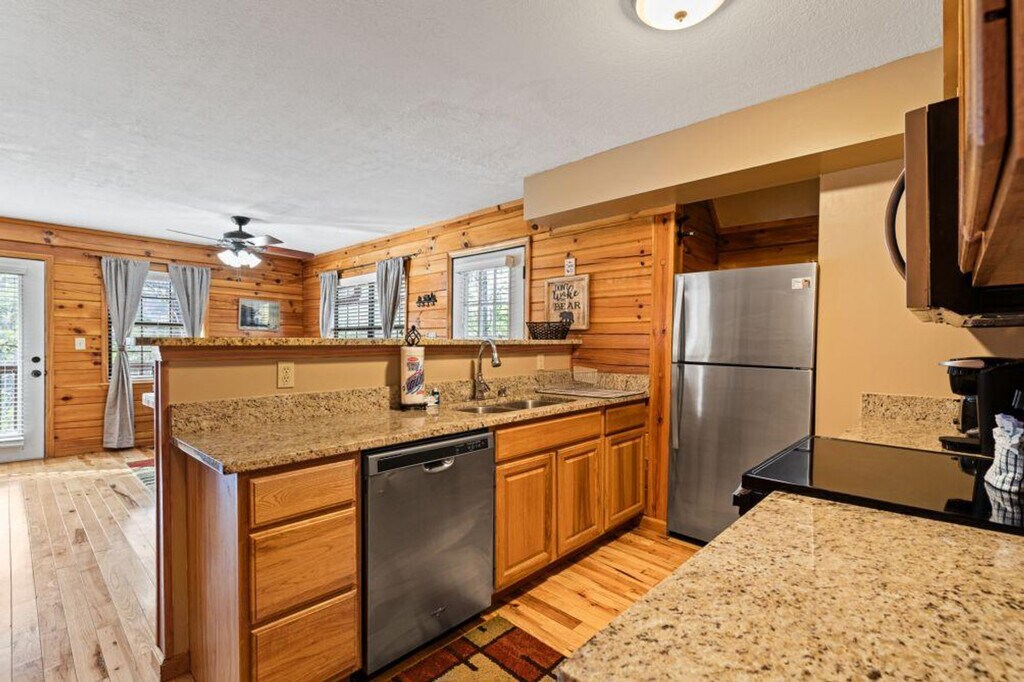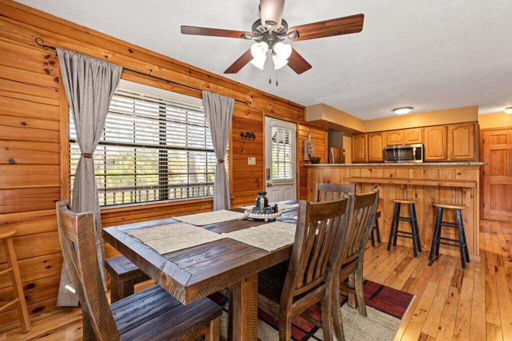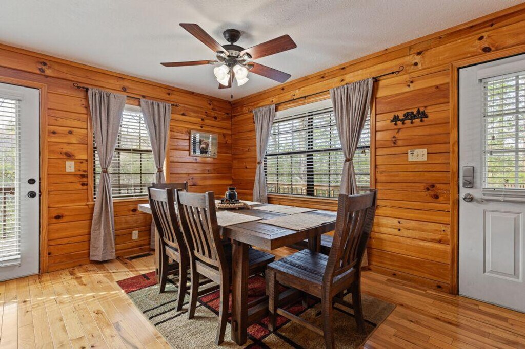 Nestled in the rolling hills of Sevierville, this 3-bedroom cabin is a true retreat for those seeking to unwind and reconnect with nature. With its warm wood interiors, high ceilings, and inviting atmosphere, it offers the perfect balance between rustic charm and modern comfort. Whether you're planning a peaceful getaway with family or a trip with friends, this cabin provides the space and ambiance to make lasting memories. The bunk bed is located in the hallway on the 2nd floor. From the moment you step inside, you're greeted by the soothing scent of pine and the cozy embrace of a home designed for relaxation. The spacious living area invites you to sink into a comfortable seat and let the crackling fireplace set the mood for a quiet evening. Natural light filters through the windows, revealing glimpses of the surrounding trees, creating a sense of serenity and seclusion. The heart of the cabin is its open living space, where conversations flow as easily as the morning coffee. Whether you're gathered around the dining table for a home-cooked meal or enjoying a peaceful moment on the deck with a cup of tea, every corner of this retreat is designed to bring people together. The cabin offers free parking for up to 3 vehicles. The hot tub is cleaned prior to your arrival and there is a $30 charge if you wish to have an additional cleaning during your stay. Outside, the beauty of the Smoky Mountains surrounds you. As the sun sets, the cool mountain air sets the perfect backdrop for an evening under the stars. Whether you're enjoying the sounds of nature, unwinding with a good book, or simply soaking in the quiet, this cabin offers a peaceful escape from the rush of everyday life. Just 5 minutes behind Dollywood and 10 minutes to downtown Pigeon Forge, the property feels tucked away yet is right by everything. Local attractions include NASCAR SpeedPark, Tanger Outlets Sevierville, Tennessee Museum of Aviation, Dolly Parton Statue, SkyLand Ranch, Forbidden Caverns, Foxfire Mountain Adventure Park, and Clingmans Dome. Check-in time is no earlier than 4:00 P.M. and check-out time is no later than 10:00 A.M. Late check-outs will result in additional charges. At least one guest must be 25 years or older and proof of age will be required at check-in. For same-day late check-ins, you need to get the host's approval before booking. A State Identification Card or Driver License copy will be requested upon booking. The cabin is non-smoking and any violation of the smoking policy will incur a $400 fine plus cleaning costs necessary to remove smoke odors. No firearms, fireworks, or ATVs are allowed. As you travel around the area, some of the mountain roads can be steep and winding, so drive cautiously. Wildlife such as deer, bears, raccoons, snakes, and bugs may be encountered, so admire these creatures from a safe distance and do not feed them. [SI]