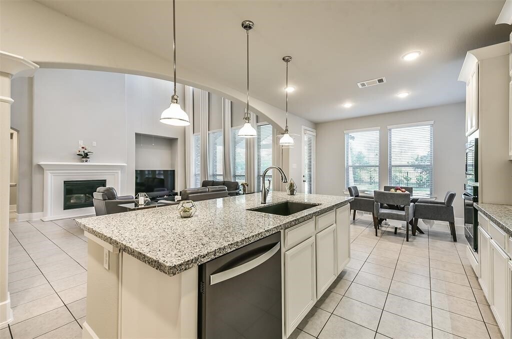 Stunning home with tons of upgrades located master-planned The Groves! Situated on a premium lot that backs to green space with paved walking trail & mature trees. Built by Westin Homes with a stone & brick facade,two story rotunda entry with sweeping staircase,grand two story family room,private study,gameroom,media room,4 bedrooms,3.5 baths & large covered back patio! The gourmet kitchen boasts black stainless appliances & vent hood,upgraded granite & backsplash,single basin quartz sink & large island with pendant lighting above. Luxurious master suite with freestanding tub,granite vanities with vessel sinks & large walk-in closet that connects to utility room. Media room is wired for sound. Custom drapes,2" blinds throughout,granite in all baths,beautiful finishes & more. Wrought iron back fence provides tranquil views of green space behind home. Walking/biking distance to the elementary,middle school & the Hearth Amenity Center that includes a resort-style pool. MLS# 35698981