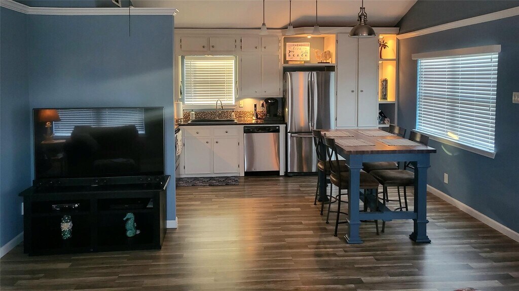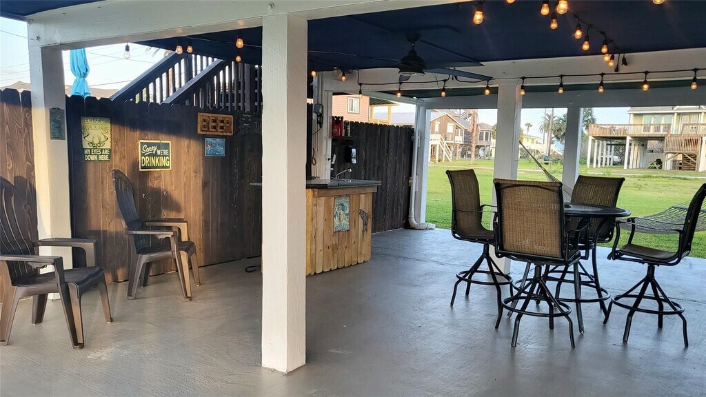 Welcome to Jamaica Beach! Only 4 blocks to the beach with peek-a-boo views of the Gulf from the south-facing deck. Conveys unfurnished. Lower level: Captain Quarters downstairs with bunkbeds and bathroom with shower. Delightful outdoor entertaining area with bar and outdoor shower. Jamaica Beach has a city park,pavilion,basketball court,boat ramp,playground and public pool. Available for lease April 1,2026,no showings until March 1,2026. New photos will be uploaded once current tenants vacate. Offered unfurnished. MLS# 73056842