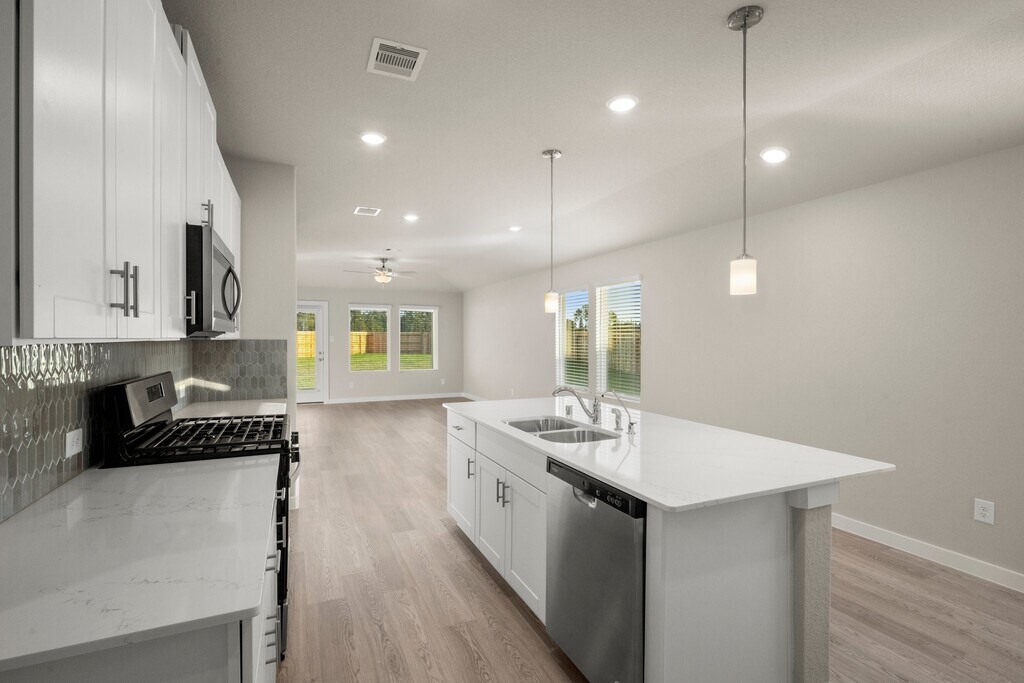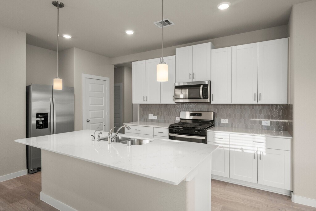 Like new construction home! Fabulous,single story home,situated at the end of a cul-de-sac street in the fabulous community of Marveda! From the moment you drive up to the home,you will fall in love with the curb appeal with light brick and rich paint colors. As you enter the home,you will appreciate the beautiful luxury vinyl plank throughout the main living areas,grand luxury kitchen with an abundance of counter space and cabinetry,and an open layout for easy entertainment. The primary bedroom is tucked away from the main living area with an ensuite bathroom. Two additional bedrooms are located up towards the front of the home along with a flex room which could be used as a dining room,study,or whatever your heart desires. Step outside onto your extended back patio and fall in love with your oversized and private backyard. This is one of the largest lots in the neighborhood! Available for move in 12/1/2025. Schedule your viewing today! MLS# 22673550