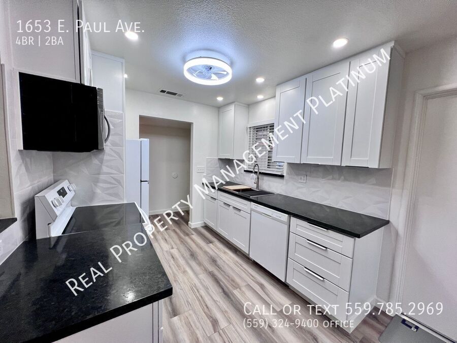 CLICK HERE to schedule a showing: Move In Ready! 4 bedroom | 2 bathroom | 1,355 sq ft | 1971 Build Enjoy this newly renovated home, featuring fresh paint and new flooring throughout. Spacious great room with sliding door access to backyard. Beautiful kitchen featuring modern details with a farmhouse style sink. New kitchen appliances, including a refrigerator, built-in microwave, electric stove/oven, and dishwasher/disposal. Laminate flooring throughout. Long hallway featuring all 4 bedrooms. 1 guest bathroom with a tub/shower combo. Primary bedroom features a private bathroom with new vanity and walk-in shower. Laundry hookups in garage with electric outlets. Attached 2 car garage. Spacious backyard featuring a shed for outdoor storage space. Yard care included. Pets not accepted. Credit score above 650 REQUIRED. No smoking. Tenant responsible for PGE and Fresno utilities. Renters Insurance is required. Fresno School District. Cross streets Cedar and Sierra. Call to schedule a showing or to contact the office. DRE# 01901101. All information is deemed reliable but not guaranteed and is subject to change. Non Smoking Renter's Insurance Required
