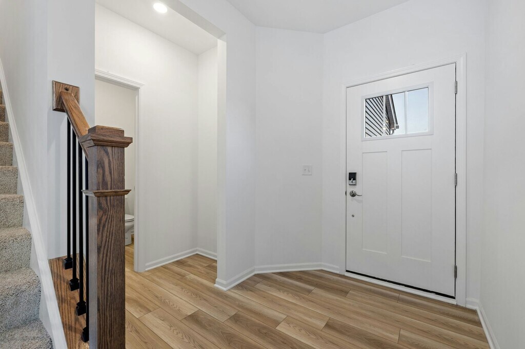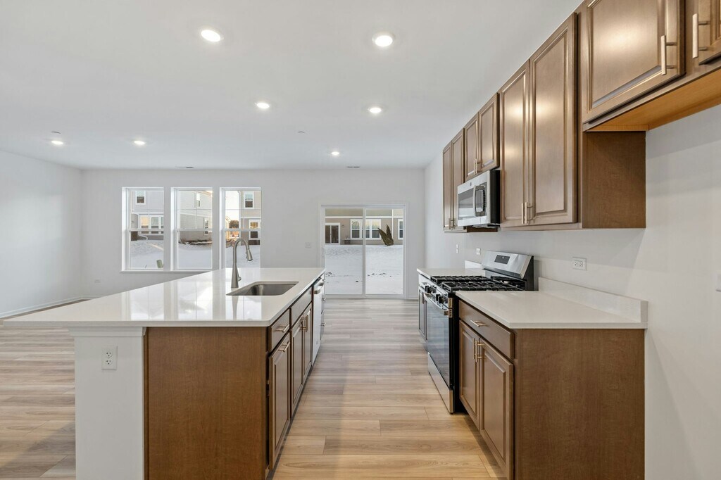 Be the first to live in this thoughtfully designed new-construction townhome. The main floor welcomes you with an open great room and dining area anchored by a modern kitchen featuring a large island with breakfast bar, 42" cabinetry, quartz countertops, stainless steel appliances, and luxury vinyl plank flooring throughout the living spaces. Upstairs, the master suite offers a peaceful retreat with a walk-in closet and spa-inspired en-suite bath. Two additional well-sized bedrooms share a full bath, and a convenient second-floor laundry room makes chores easy. A 2-car attached garage provides secure parking and extra storage. Ideal for anyone seeking low-maintenance, contemporary living in a community designed for comfort and convenience. Refridgerator and washer/dryer are included (photos done prior to delivery).