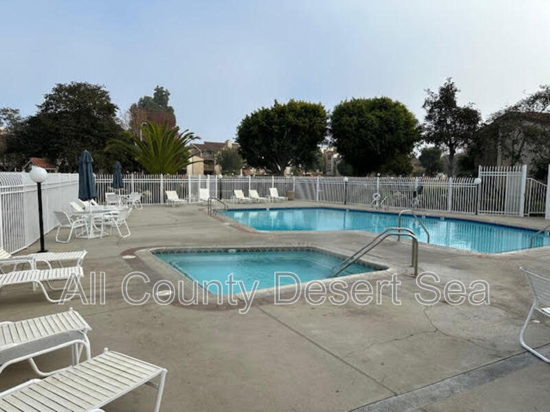 Enjoy coastal living at its finest with this bright and airy top-floor, end-unit home, filled with natural sunlight and refreshing sea breezes. With two en-suite master bedrooms, this spacious property offers vaulted ceilings, recessed lighting, and a cozy living room with a fireplace. The kitchen features a large layout with a breakfast bar. The main bedroom retreat is a true highlight, offering double-door entry, a beautifully remodeled bathroom with a gray stone dual-sink vanity, soaking bathtub, and a spacious walk-in closet. Both bathrooms have privacy doors for the shower and bathtub areas. Additional features include an indoor laundry room, with an optional washer and dryer if tenant needs them. The oversized one-car garage and assigned parking space are conveniently located close to the elevator for easy access. Enjoy nearby dining, entertainment, and outdoor fun at Sea Legs and fire pits along the beach!