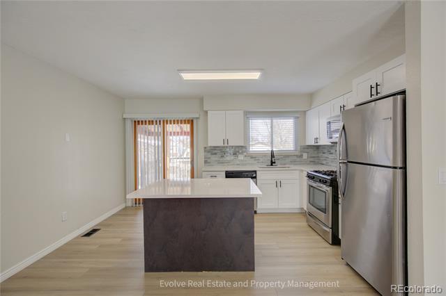 Available April 7th – Watch the video tour below or on our Facebook page! Newly remodeled home that combines modern style with comfort in a prime location! This property features new wood flooring throughout, offering a fresh & inviting atmosphere from the moment you step inside. The heart of the home is the fully renovated kitchen, showcasing elegant quartz countertops, all-new cabinetry, and stainless steel appliances, perfect for cooking and entertaining. With 4 spacious bedrooms plus an office and 2 bathrooms, this home is designed with both functionality and style in mind. The large, open living areas are perfect for relaxing or hosting guests, and the newly updated finishes provide a sleek, contemporary look that will appeal to anyone seeking a luxury property. Step outside to enjoy your large fenced-in backyard, ideal for family gatherings, gardening, or simply unwinding in your own private space. The covered patio adds an extra touch of comfort, allowing you to enjoy outdoor dining or relaxation, rain or shine. Perfectly located near Buckley Air Force Base, Southlands Mall, and Aurora Reservoir. Enjoy easy access to E-470 and I-225 for a smooth commute to Downtown Denver.Pets considered with an additional $35 monthly pet rent and a $300 deposit. Maximum of two dogs—full-grown animals only. To schedule a showing, please email or text. For more listings, visit Video Walkthrough: Applicant has the right to provide Evolve Real Estate and Property Management with a Portable Tenant Screening Report (PTSR) that is not more than 30 days old, as defined in § 38-12-902(2.5), Colorado Revised Statutes; and 2) if Applicant providesEvolve Real Estate and Property Management with a PTSR, Evolve Real Estate and Property Management is prohibited from: a) charging Applicant a rental application fee; or b) charging Applicant a fee for Evolve Real Estate and Property Management to access or use the PTSR. Single Family Residence MLS# 5128919
