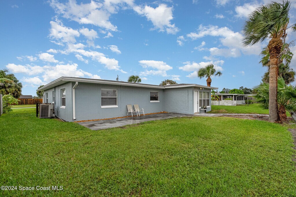 This beautiful canal-front home offers direct access to the river with no bridges,making it ideal for boating enthusiasts. Enjoy your own private dock out backperfect for relaxing,fishing,or watching dolphins frolic in the water. Step inside to an inviting open floor plan featuring stainless steel appliances and a brand-new dishwasher. The spacious layout provides plenty of room to spread out while still maintaining a warm,cozy atmosphere. Recent updates include a new water heater and new blinds installed throughout many of the windows. Located in a highly desirable area,the property is less than 45 minutes from Orlando International Airport and just a short drive from the Kennedy Space Center. This home blends comfort,convenience,and Florida waterfront living at its best.
