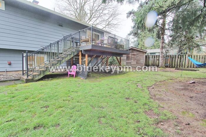 Beautiful remodeled home available in Sherwood. 4 bedrooms, 3 bathrooms, 2 car garage, 2 fireplaces, huge fenced yard, large deck in an established neighborhood with mature landscaping. It is located near the Stella Olsen Memorial Park and Sherwood Middle School, as well as, many restaurant, shopping and entertainment options. This home welcomes you with an open floor plan, large picture windows and wood plank flooring. The kitchen is expansive with an abundance of cabinets and counter space, an island with sink and eatery bar. The main bathroom has a large vanity and tub/shower combo. All of the bedrooms are spacious with generous closets. It has a primary suite with bathroom with a shower. There is a bonus/family room in the daylight basement. No AC. Forced air heat. Tenants maintain yard care and all utilities. Pets welcome to 75 lbs max weight. $800 additional refundable pet fee for each pet. View our VIDEO tour at Applications are online at our website Call Blue Key Property Management, Inc. at to schedule a showing Monday-Friday 9 am to 5 pm. $3395 Rent, $3395 Security deposit, $55 non refundable screening fee per adult age 18 and older. $800 additional refundable deposit per pet if owners allow pets. Renter’s insurance required. For available homes, more information, rental criteria, video tours or online applications visit Blue Key Property Management, Inc. licensed in WA and OR. 16559 SW Shane Court, Sherwood, OR 97140 Contact us to schedule a showing.